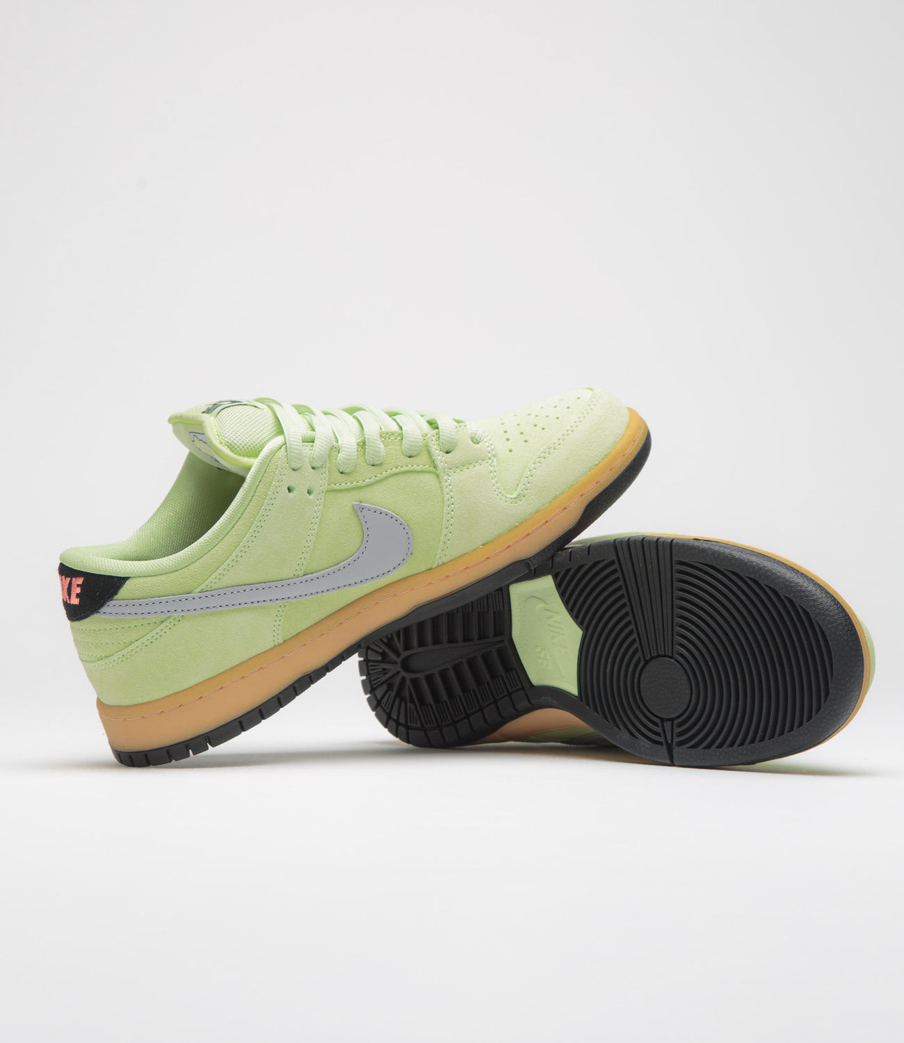Nike SB Dunk Low Pro Premium 'Verdugo Mountain' Shoes in Pistachio Frost, Wolf Grey and Black. A tribute to California’s Verdugo Mountains, this Nike SB Dunk Low Pro Premium is crafted with suede uppers and a padded canvas tongue. Featuring a perforated toe box, rounded laces, a foam sockliner and Zoom Air inserts, this green Nike SB Dunk Low Pro Premium also features a gum rubber midsole and a black rubber outsole. Finished with grey black Swooshes, a padded canvas tongue, embroidered Nike heel branding and custom Verdugo Mountain insole artwork.