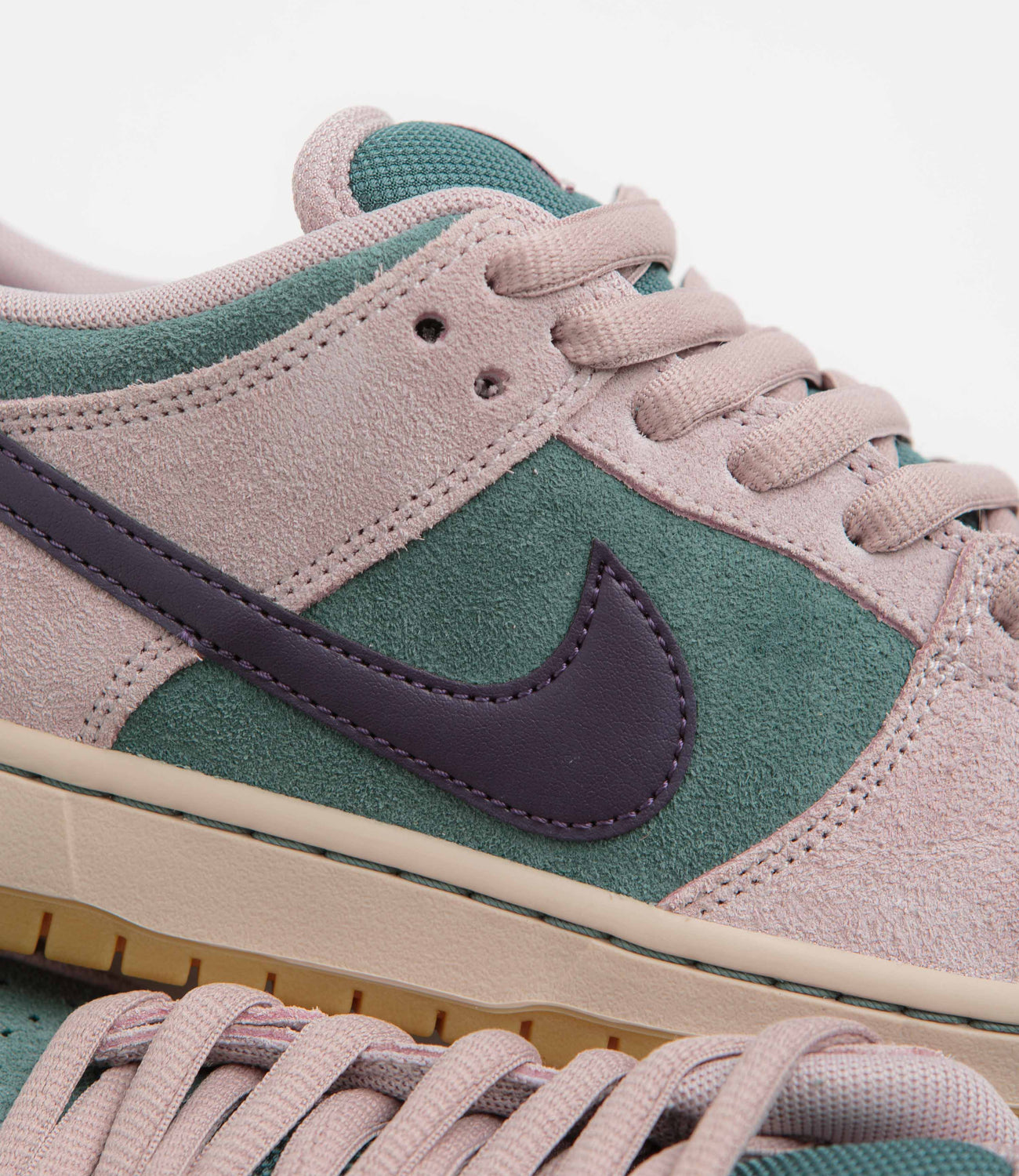 Rich tones, easy shape. This Dunk lands in a rose and mineral green colourway that feels considered without trying too hard. Soft suede keeps things grounded, with just enough contrast to give it a bit of presence. Perforations up front keep air moving, while the padded mesh tongue adds that all-day comfort you don’t have to think about. Underfoot, Zoom Air cushioning smooths things out, with a classic rubber outsole for steady grip. Finished with leather Swooshes and subtle Nike embroidery at the heel to pull it all together.