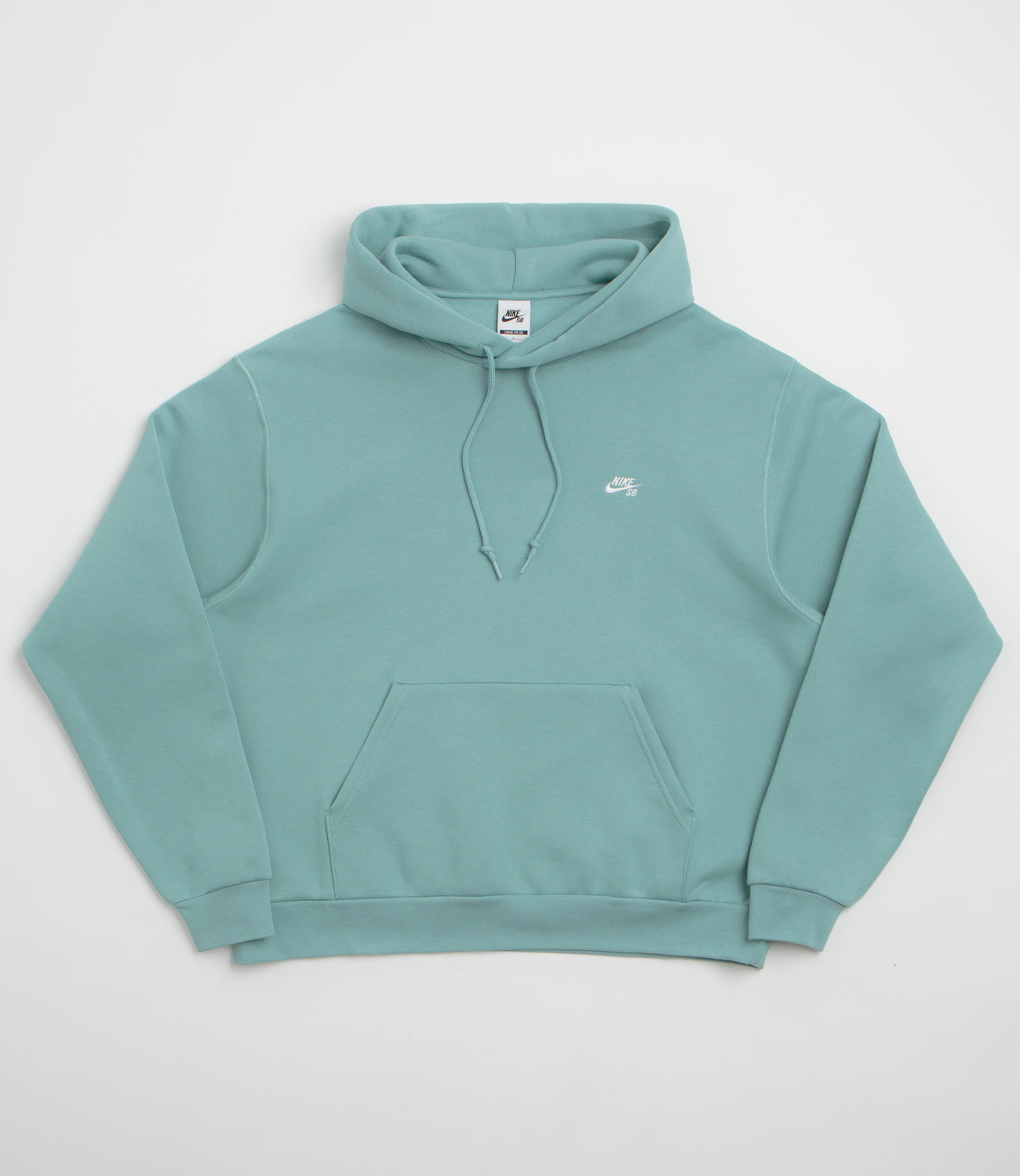 Nike SB Essential Logo Hoodie in Cannon and White. Loose fitting with a brushed fleece inner, this Nike SB hoodie is made from a cotton-polyester blend. Featuring an adjustable drawcord hood and ribbed cuffs, this blue Nike SB hoodie is finished with a kangaroo front pocket and embroidered branding.
