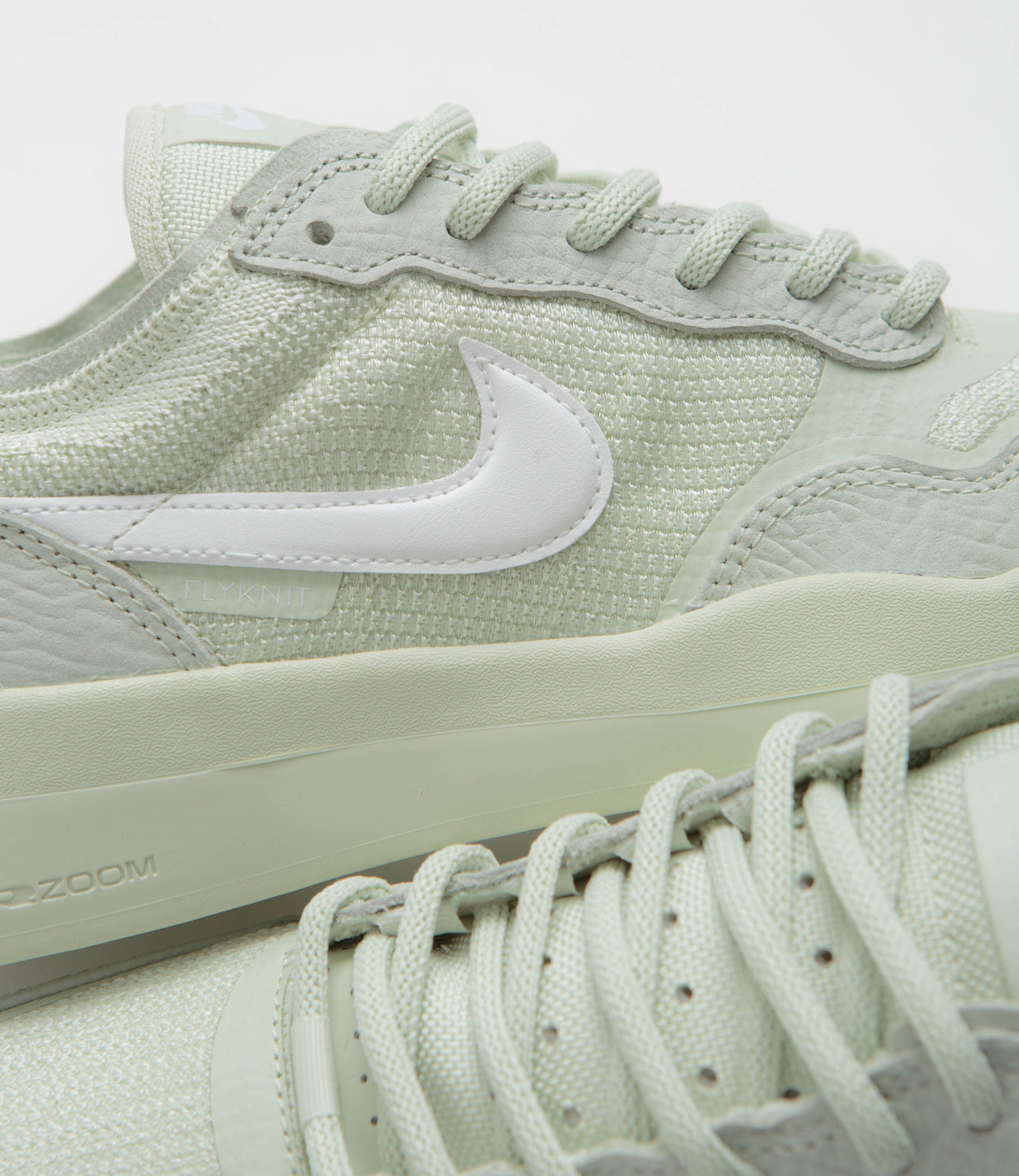 Inspired by Sandy Bodecker’s vision, built to move from skate spots to city streets with ease. The sea glass Flyknit upper keeps things breathable, while leather overlays and a concealed lacing system maintain a clean, streamlined look. Leather Swooshes add a subtle signature touch, and Air Zoom cushioning with a sock-like cuff keeps every step comfortable. Finished with a High Abrasion Rubber Tech outsole and multi-directional tread for reliable grip wherever you go.