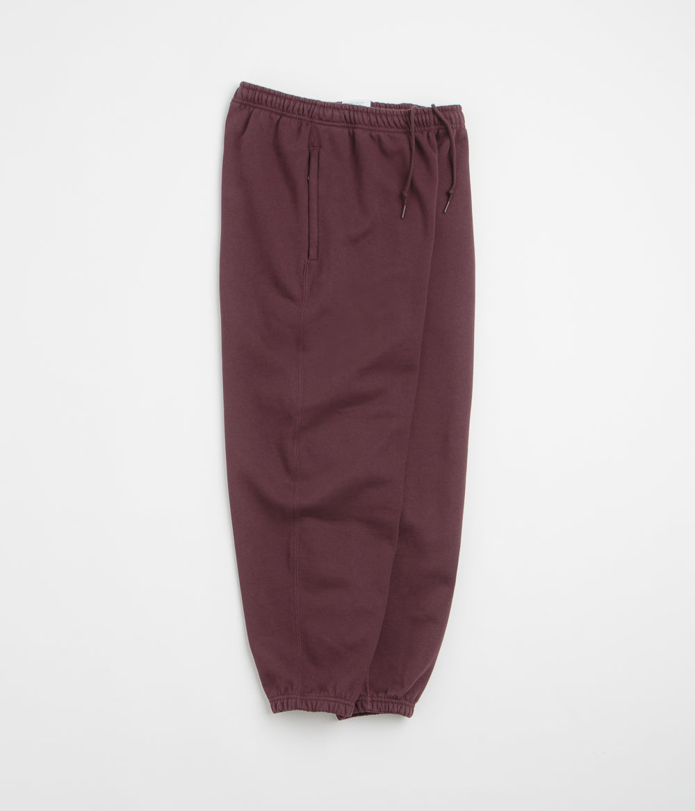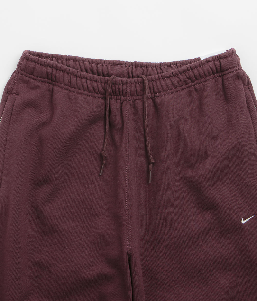 Nike Solo Swoosh Cuffed Sweatpants in Burgundy Crush and White. Regular fitting and made from a heavyweight cotton-polyester blend, these Nike sweatpants are designed with an elasticated waistband and two side pockets. Finished in burgundy with elasticated cuffs and embroidered Solo Swoosh branding.