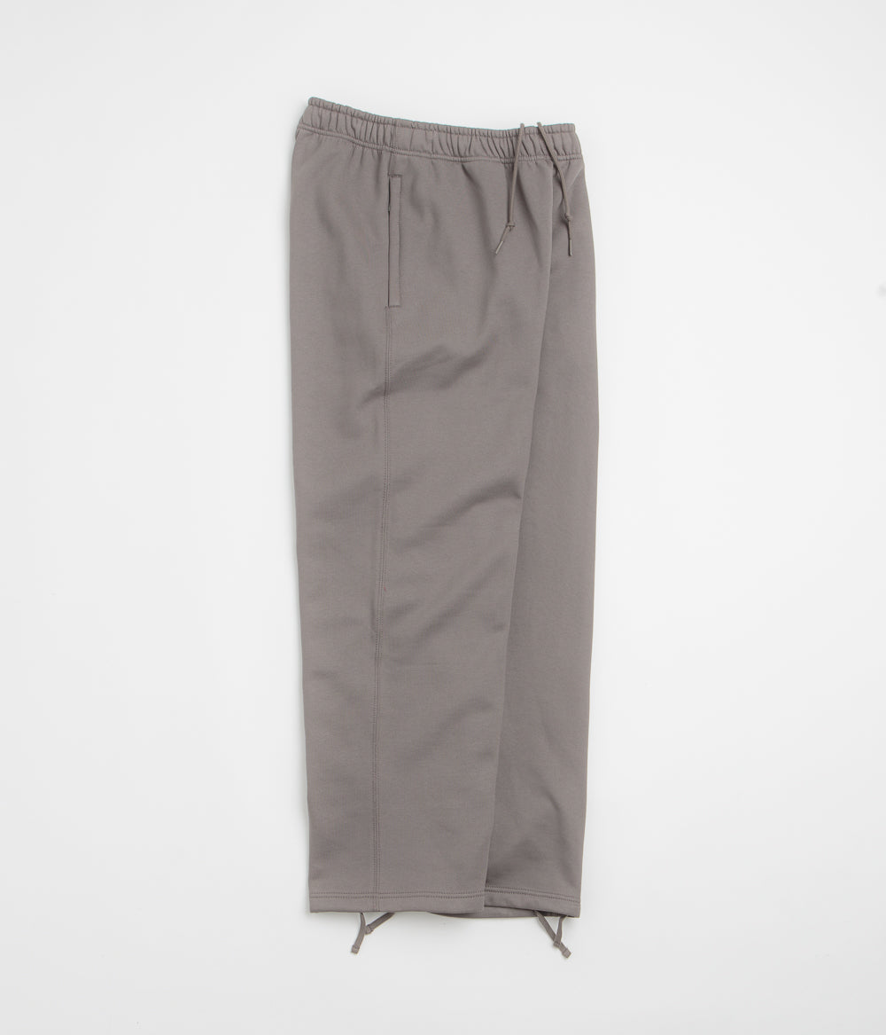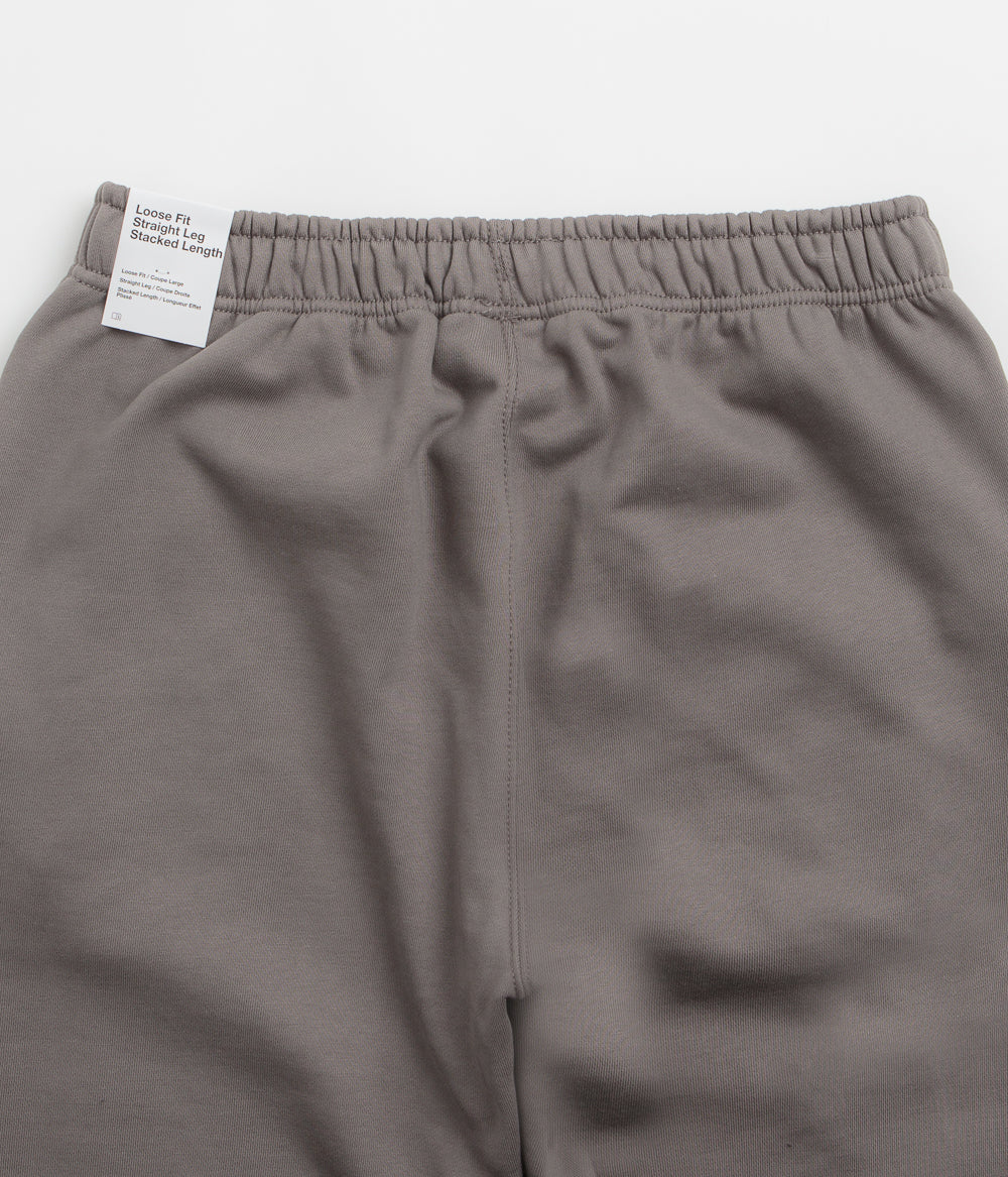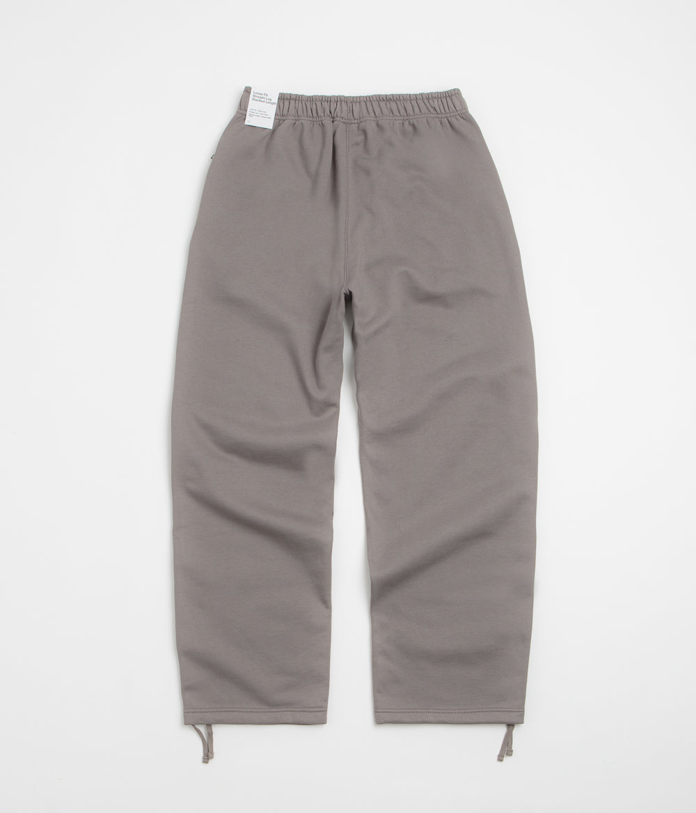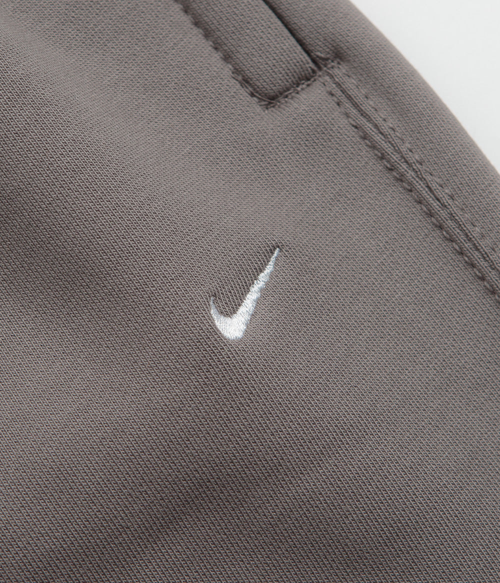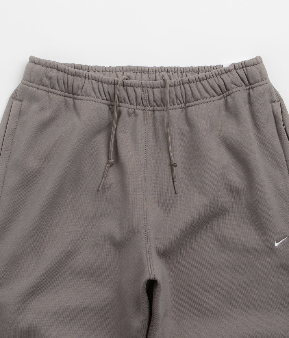 Nike Solo Swoosh Open Hem Sweatpants in Cave Stone and White. Regular fitting and made from a cotton-polyester blend, these straight leg Nike sweatpants are designed with a brushed fleece inner. Featuring two zippered side pockets and an open hem, these brown Nike sweatpants are finished with embroidered logo branding.
