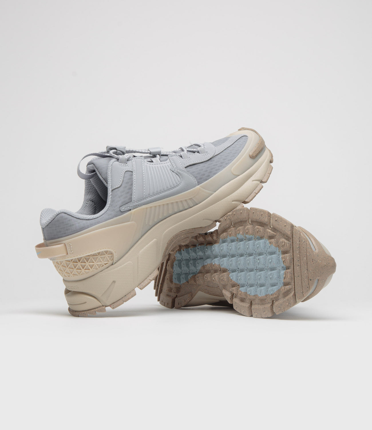 Nike Vomero Roam Shoes in Wolf Grey, Sanddrift and Hemp. Trail inspired by designed for city conditions, this Nike Vomero Roam is crafted with durable textile and mesh uppers with a protective rubber mudguard. Featuring a lace-toggle fastening, Zoom Air cushioning and a chunky foam midsole, this grey Nike Vomero Roam also features tonal side wall Swooshes. Finished with woven pull tabs, printed insoles and an innovative HART (High Abrasion Rubber Tech) outsole.