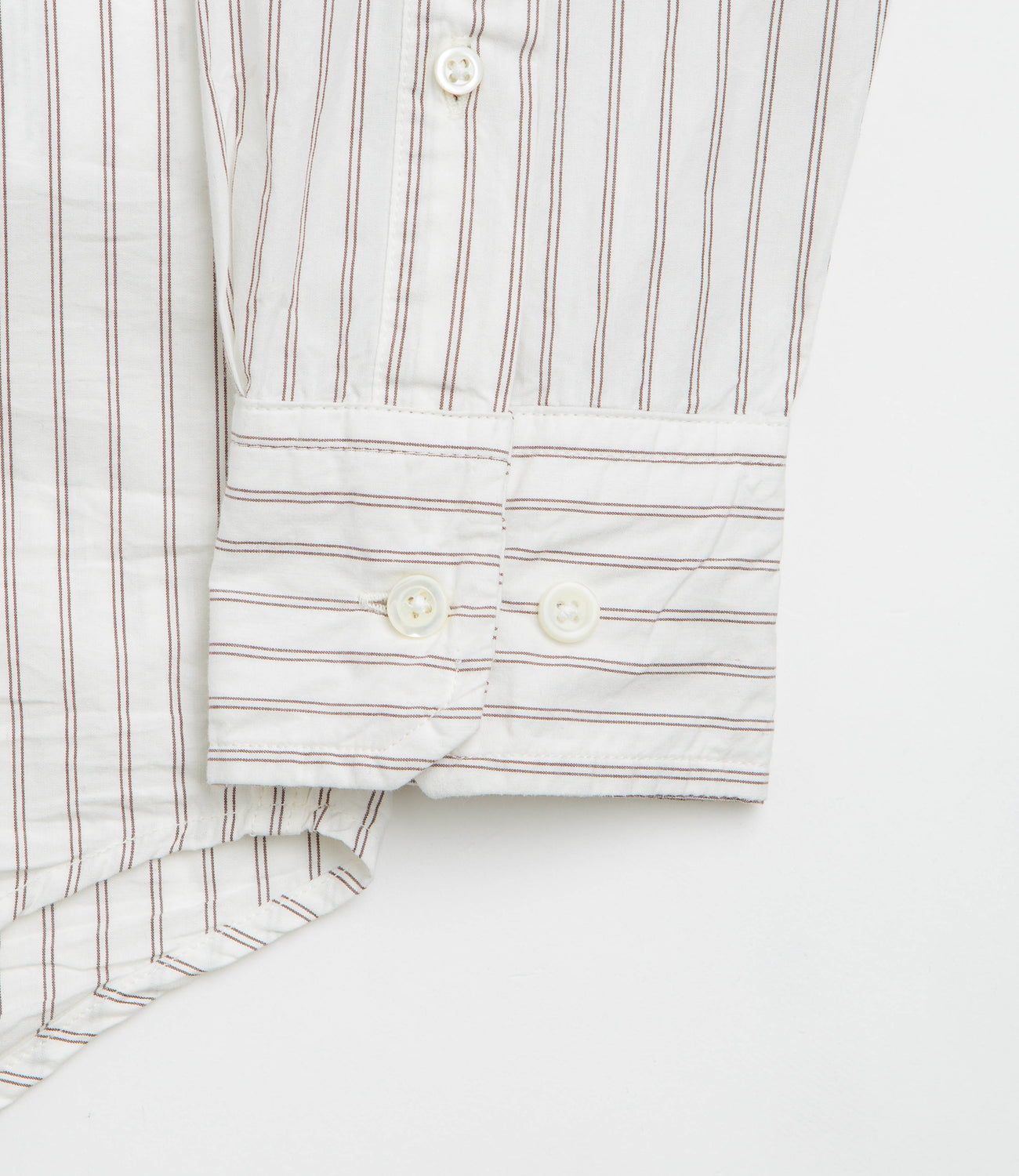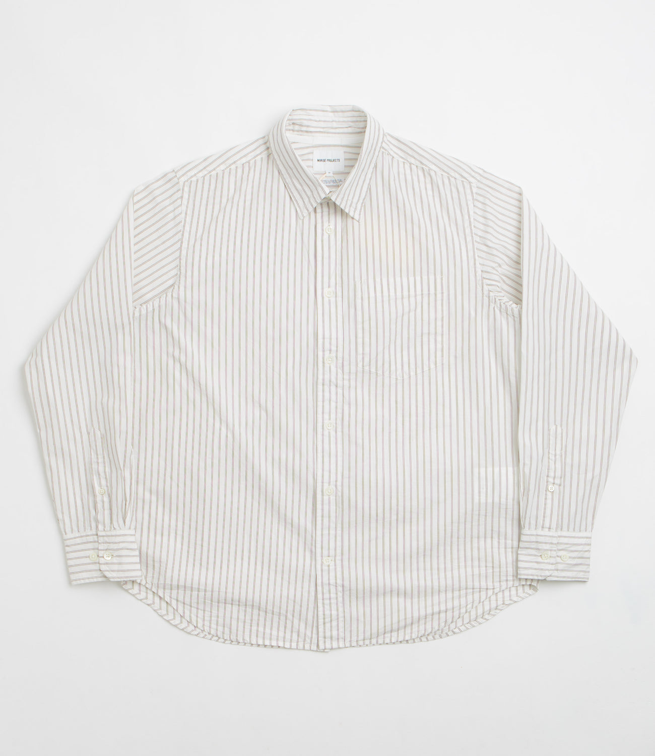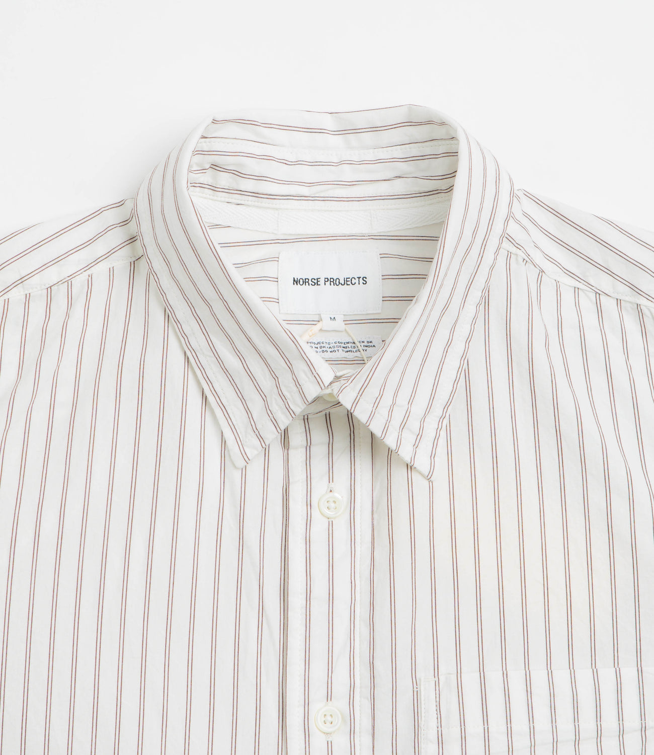 Made from 100% cotton poplin, this Norse Projects shirt offers a clean take on a timeless striped style. The yarn-dyed fabric gives depth to the all-over pattern, while a stand collar, single chest pocket, and full-length button fastening keep things classic. Designed with buttoned cuffs, a curved hem, and box pleat detailing at the back for an easy drape, it’s a regular-fit shirt built for versatile, everyday wear.