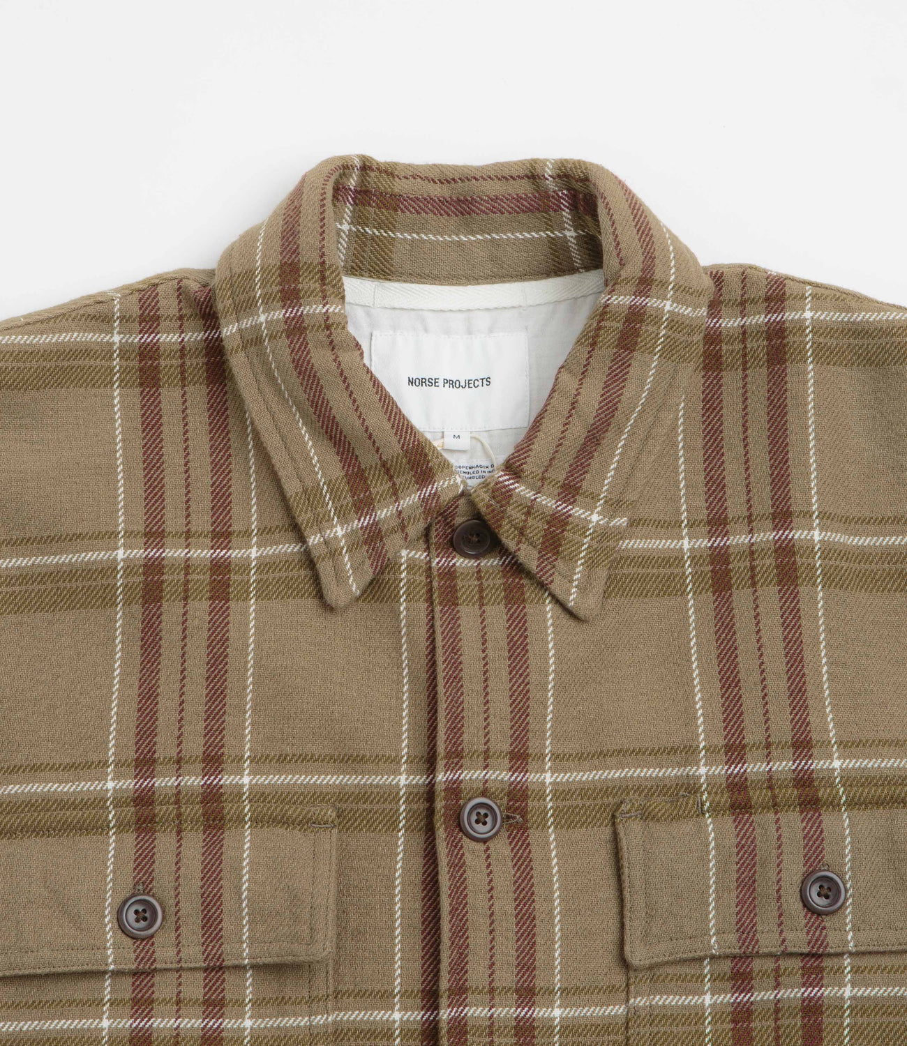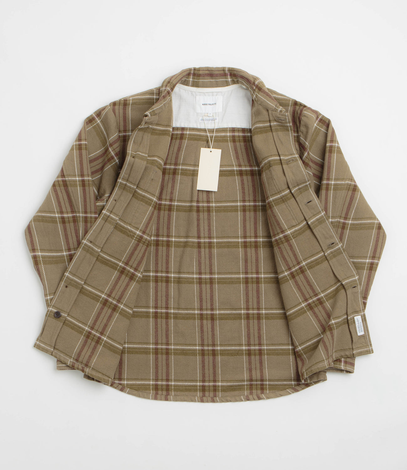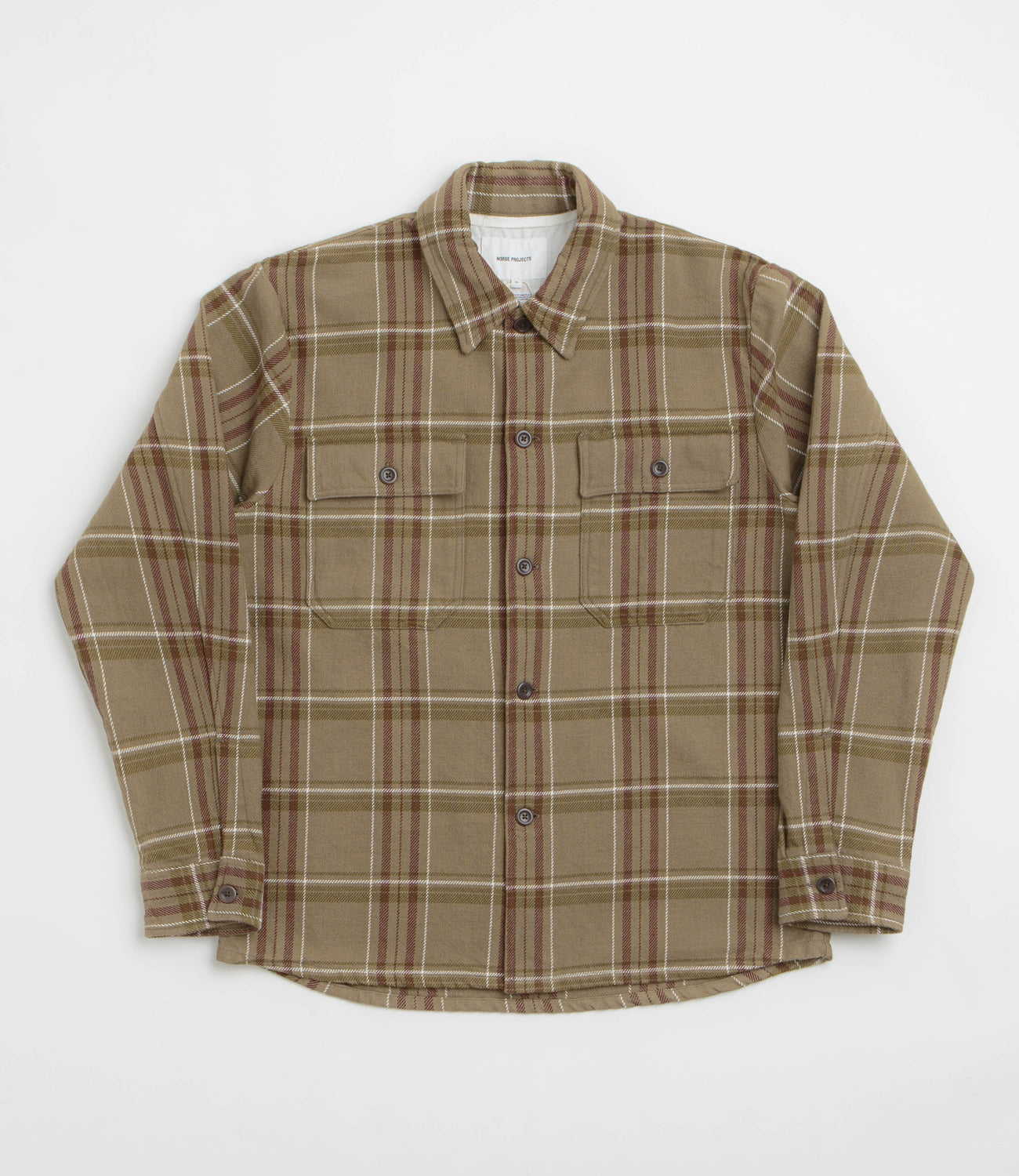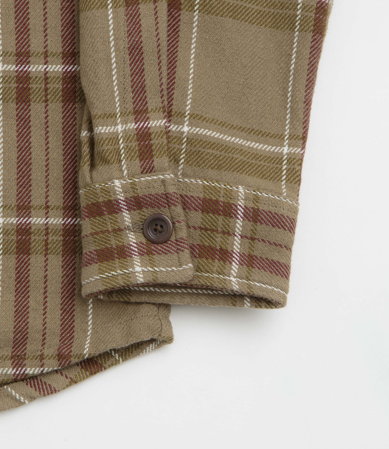 Made from 100% cotton, this walnut brown overshirt combines everyday comfort with classic workwear styling. Cut to a regular fit with an all-over check pattern, it features a stand collar, full-length button fastening, and two buttoned chest pockets for a practical finish. Adjustable cuffs and a slightly curved high-low hem round it off for easy layering through the seasons.