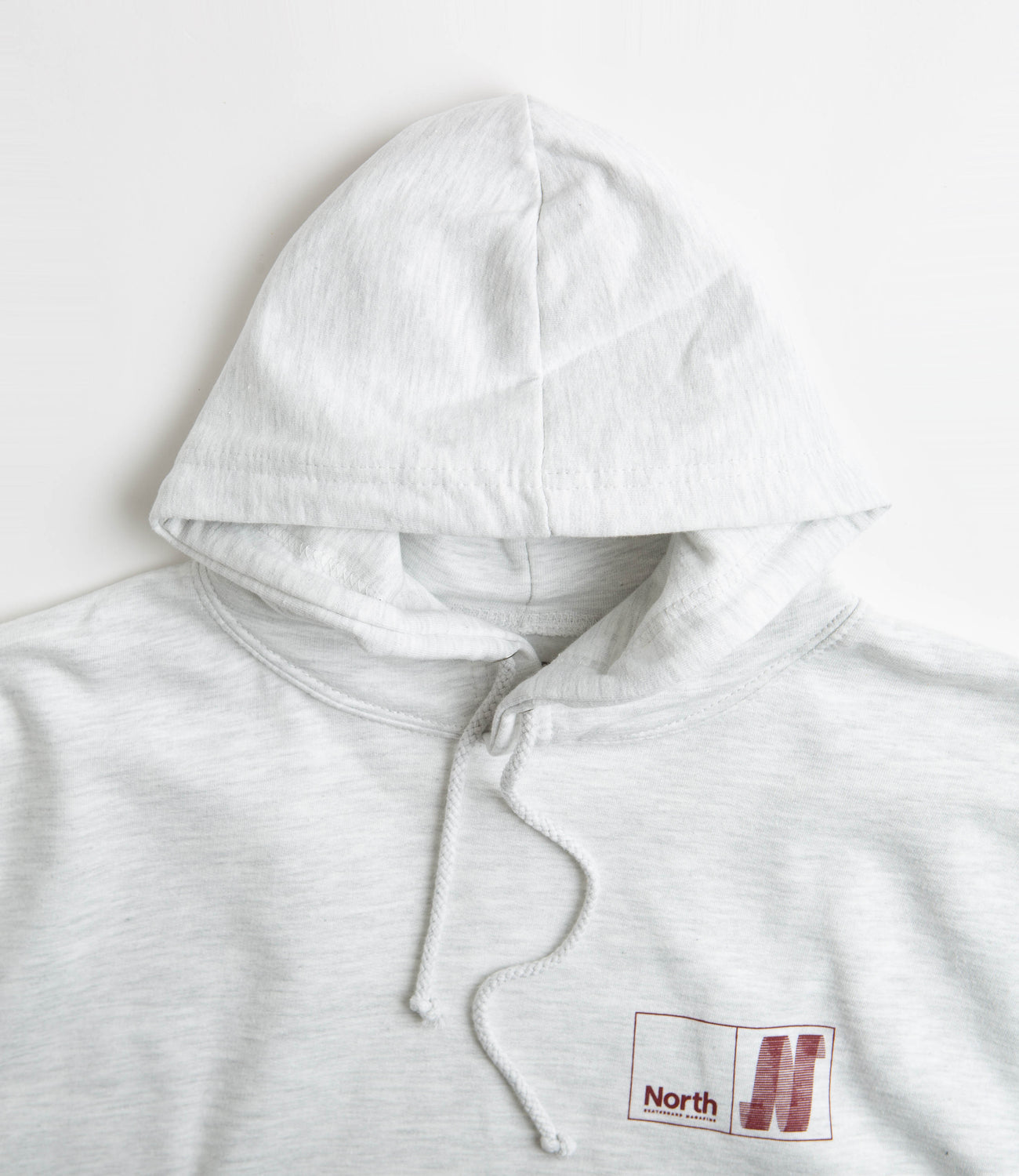North N Logo Hoodie in Ash and Crimson. Part of the brand’s latest collection, this North hoodie is made from a cotton-polyester blend with a drawstring adjustable hood. Featuring ribbed cuffs and a woven elastic hem, this grey North hoodie is finished with a kangaroo front pocket and with screen printed graphics displayed across both the left chest and reverse.