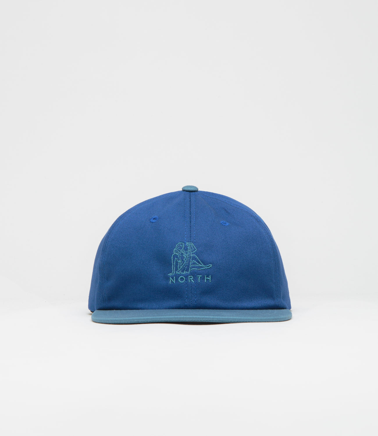 North Zodiac Two Tone Cap in Blue and Navy. Part of the brand’s latest release, this single sized North cap is made from 100% cotton with a classic six panel profile. Featuring a contrasting flat peak, embroidered airflow eyelets and an adjustable rear fastening, this blue North cap is finished with an embroidered zodiac crown graphic.