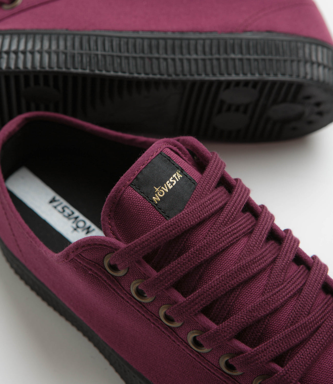Novesta Star Master Shoes in Port Royale. Designed with a cotton upper and a lined inner, this Novesta Star Master is detailed with bronze eyelets. Featuring a reinforced rubber toe, woven tongue labels and a vulcanised construction, this burgundy red Novesta Star Master is finished with a pressed rubber outsole.