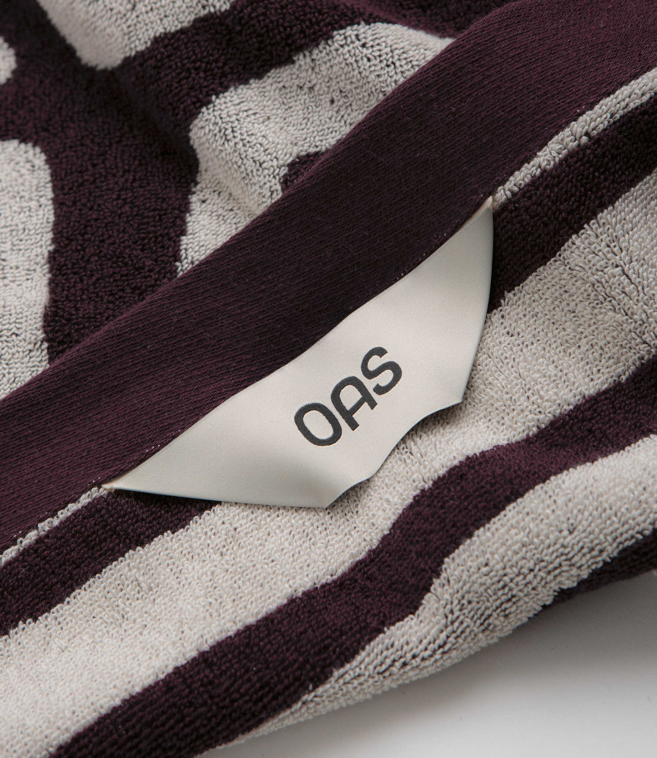 OAS Towel in Kalahara. Suitable for beach, pool and every day use, this OAS towel is crafted from 100% cotton. Single sized and finished with an all-over jacquard woven pattern with a highly absorbent terrycloth fabrication.