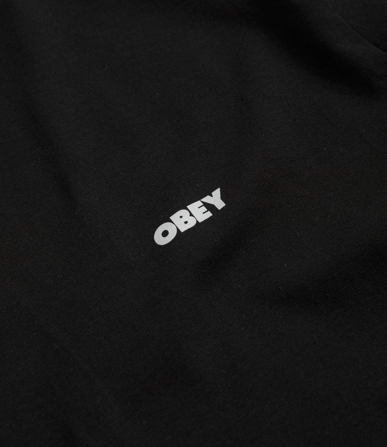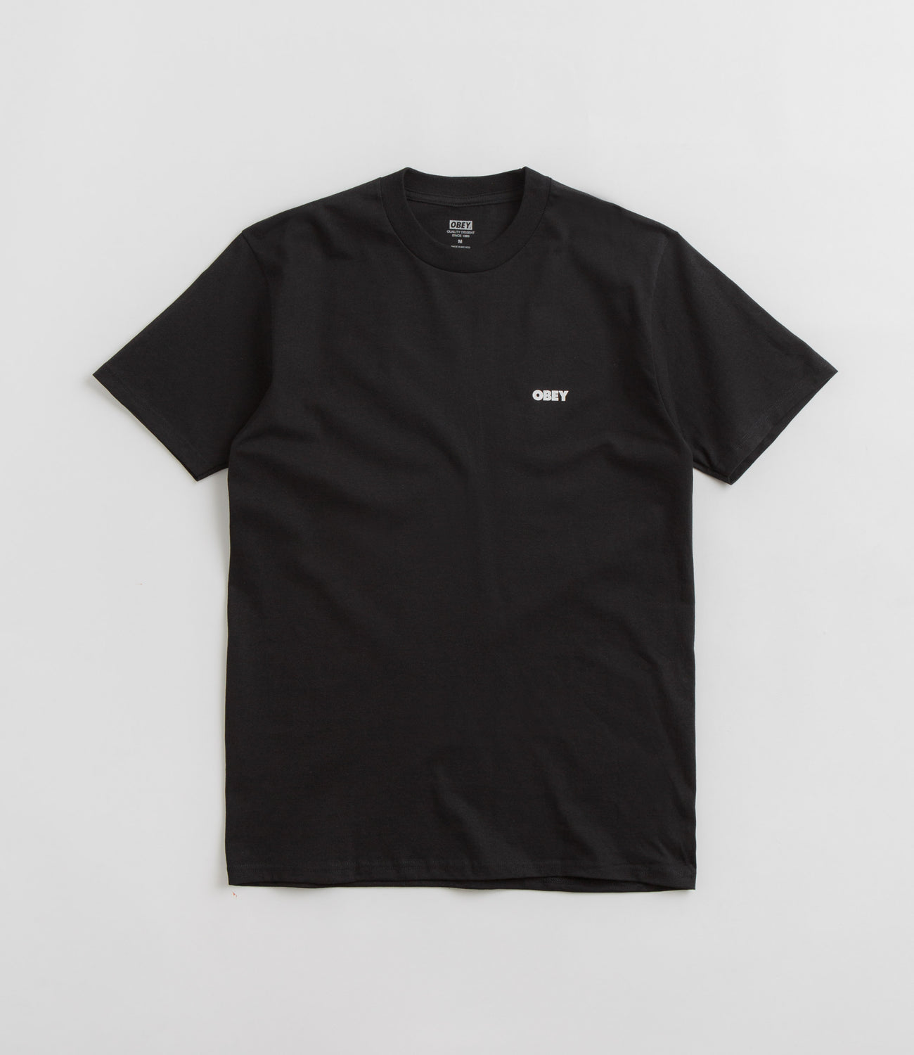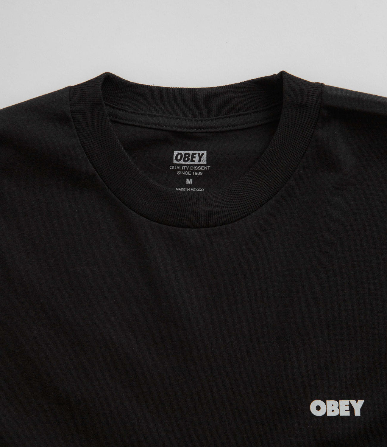 Obey Obey 2 T-Shirt in Black. Made from 100% cotton and tailored to a regular fitting, this Obey t-shirt arrives as part of the brand’s latest collection. Featuring a classic crew collar and a straight cut hem, this black Obey t-shirt is finished with printed front and rear graphics.
