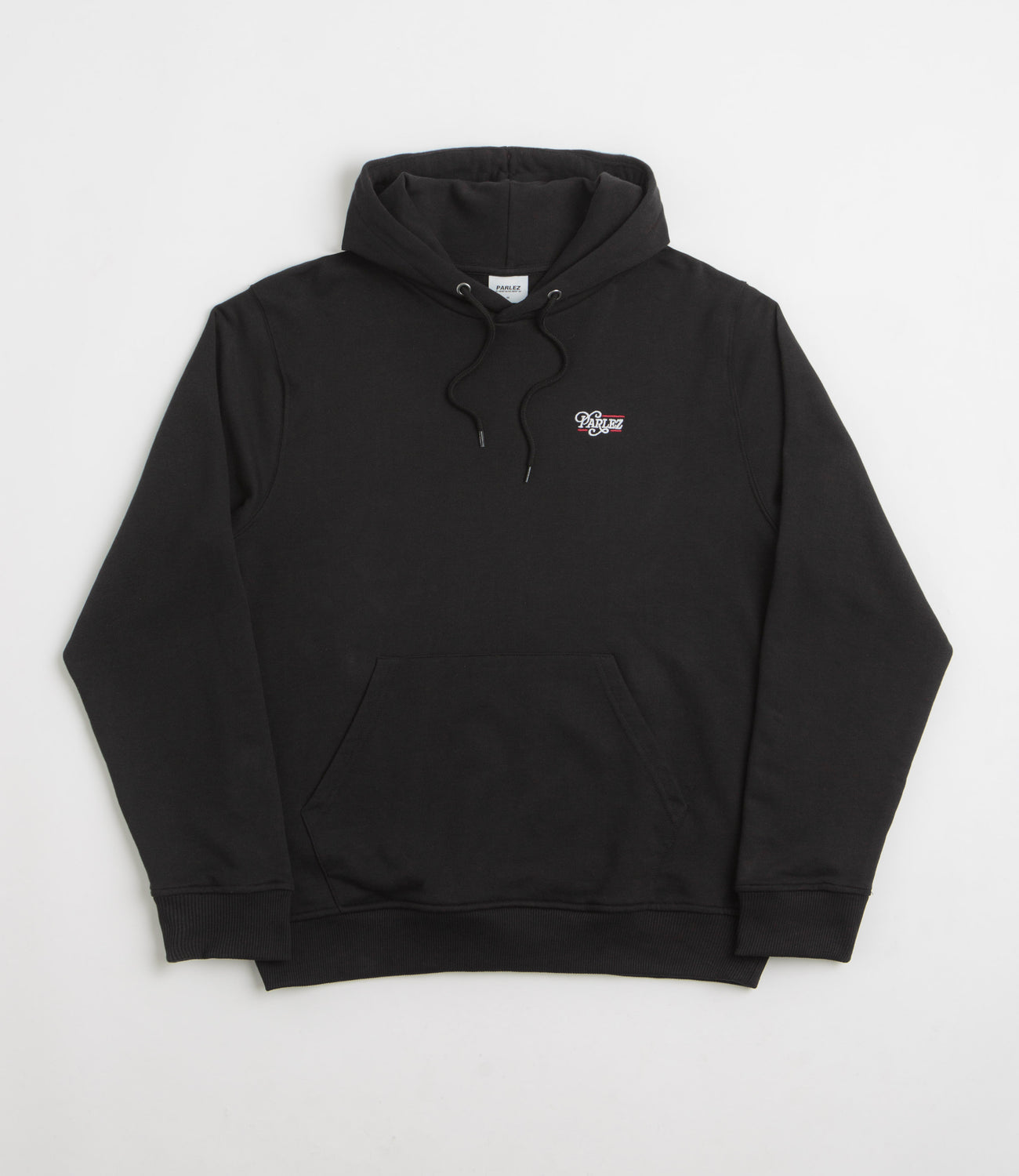 Regular fit and built from a recycled polyester-organic cotton blend, this Parlez hoodie keeps things simple and solid. It features an adjustable drawstring hood, a kangaroo pocket for easy storage, and ribbed cuffs for a snug fit. Finished in black with subtle embroidered branding that’s all about understated style.