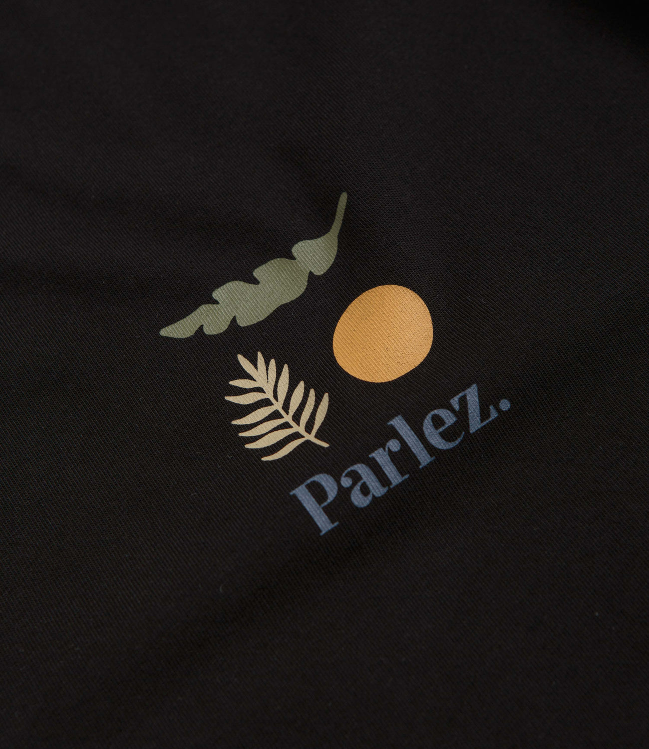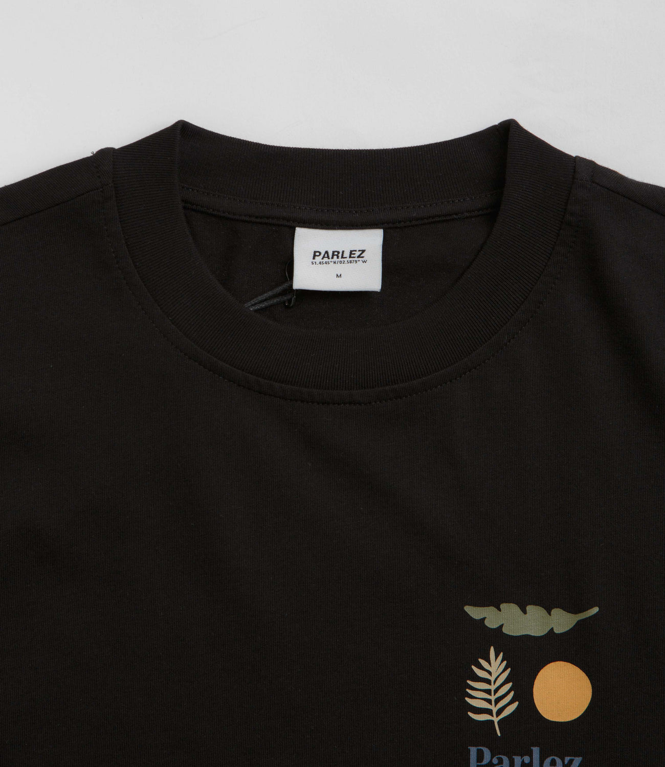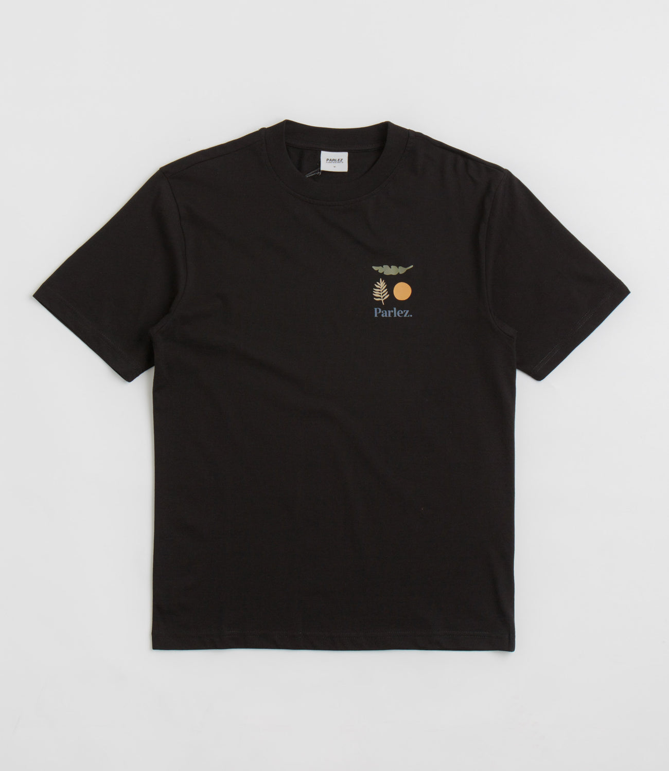 Parlez Henshaw T-Shirt in Black. Regular fitting and made from 100% organic cotton, this block tone Parlez t-shirt is designed with a rib knit collar and a straight cut hem. Finished in a shade of black with screen printed front and rear graphics.