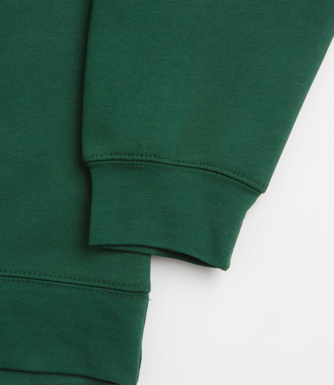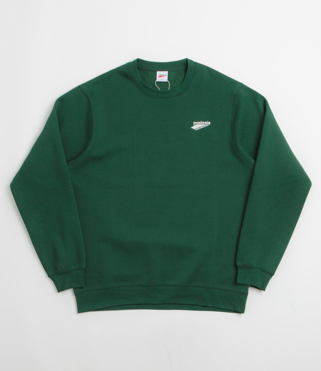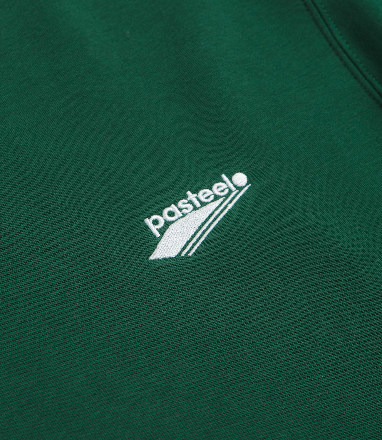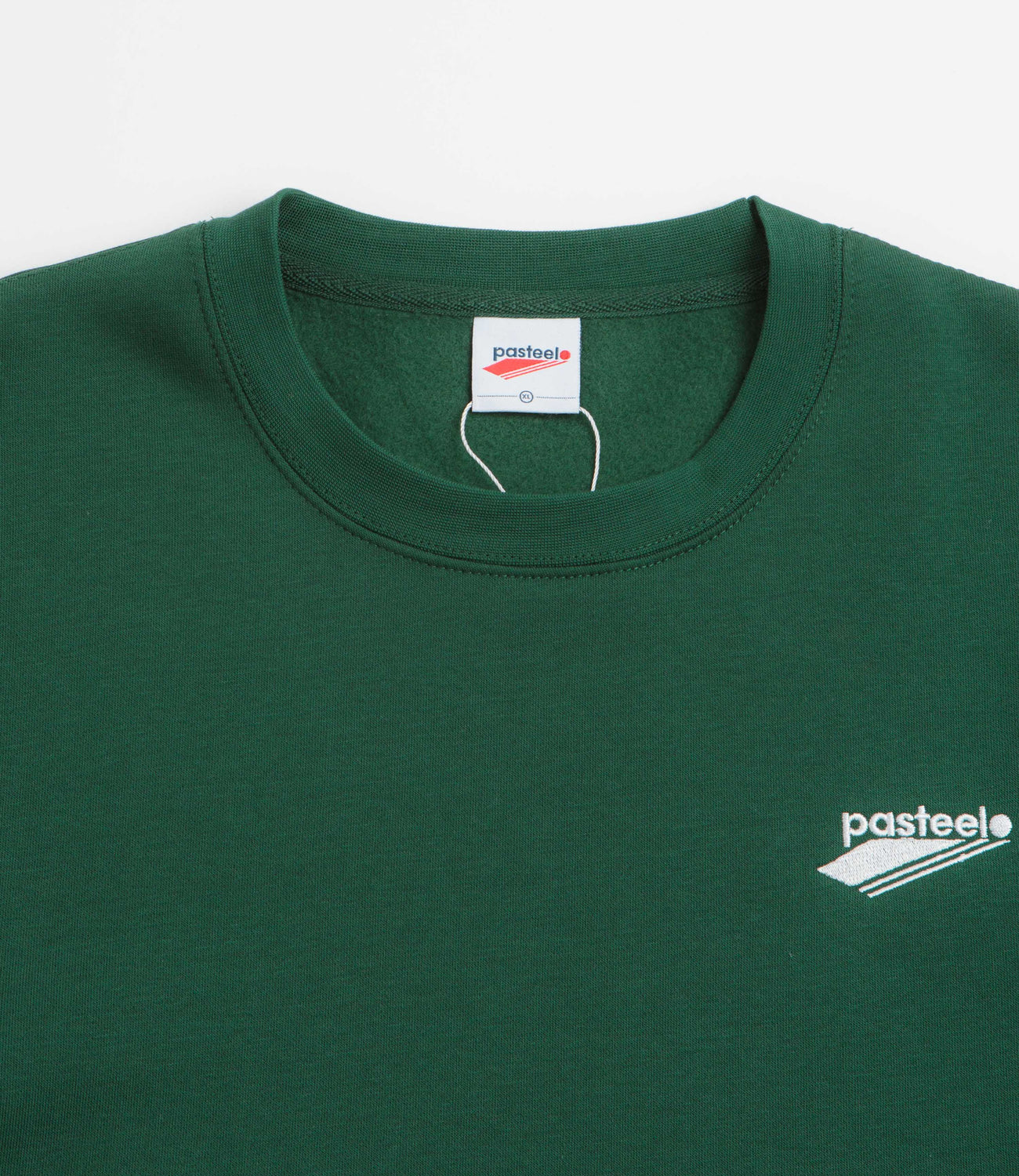 Pasteelo Embroidered O.G. Crewneck Sweatshirt in Dark Forest. Made from a midweight cotton-polyester blend, this block tone Pasteelo sweatshirt is designed with a classic crew collar and ribbed cuffs. Finished in dark green with a woven elastic hem and an embroidered logo.