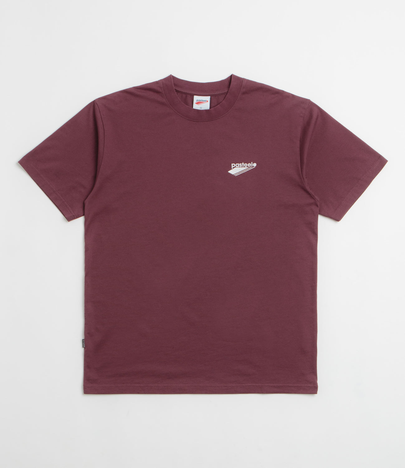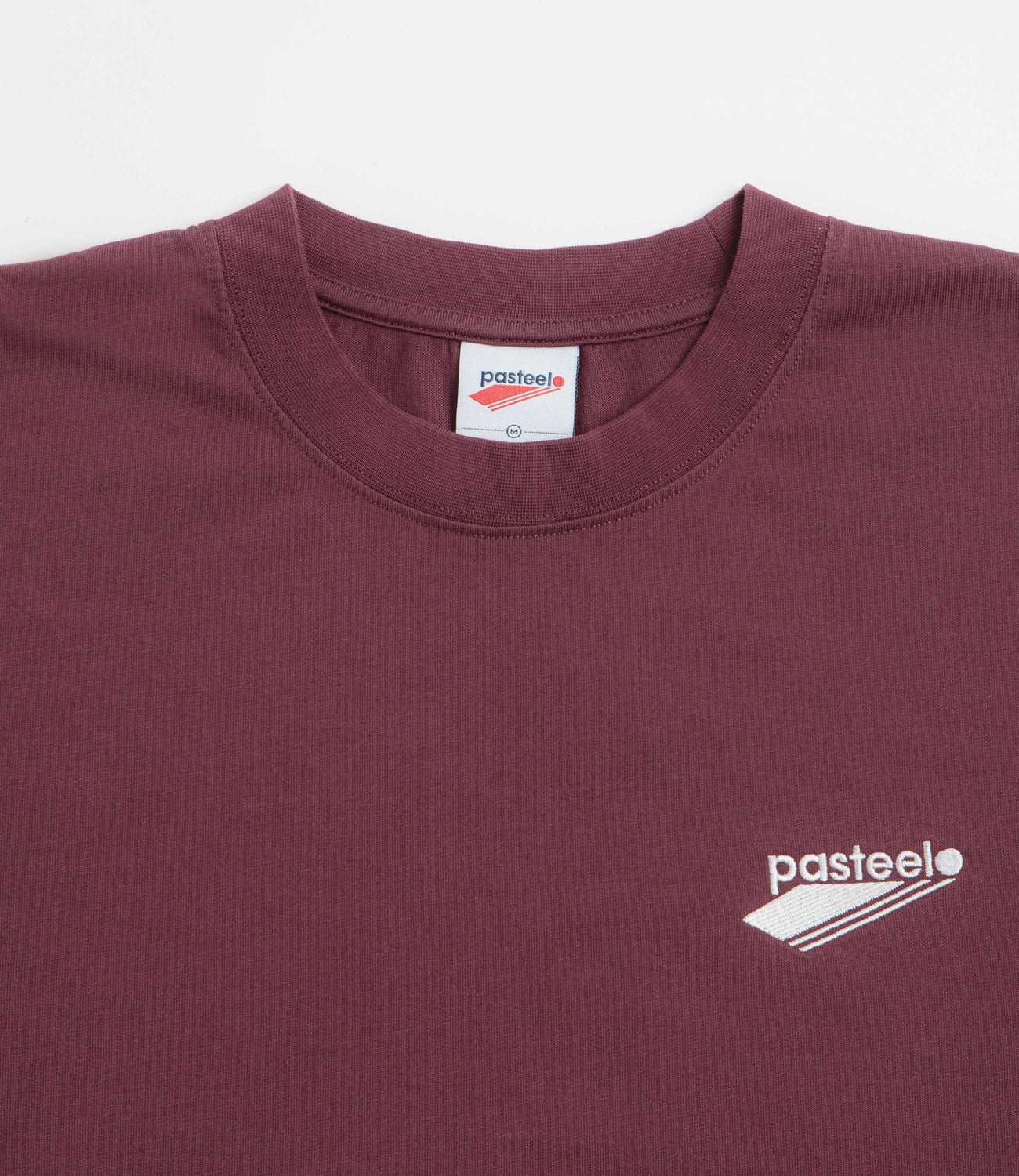 Pasteelo Embroidered O.G. T-Shirt in Burgundy. Regular fitting, this block tone Pasteelo t-shirt is made from a cotton-polyester blend. Finished in burgundy with a rib knit collar, a straight hem and an embroidered logo.