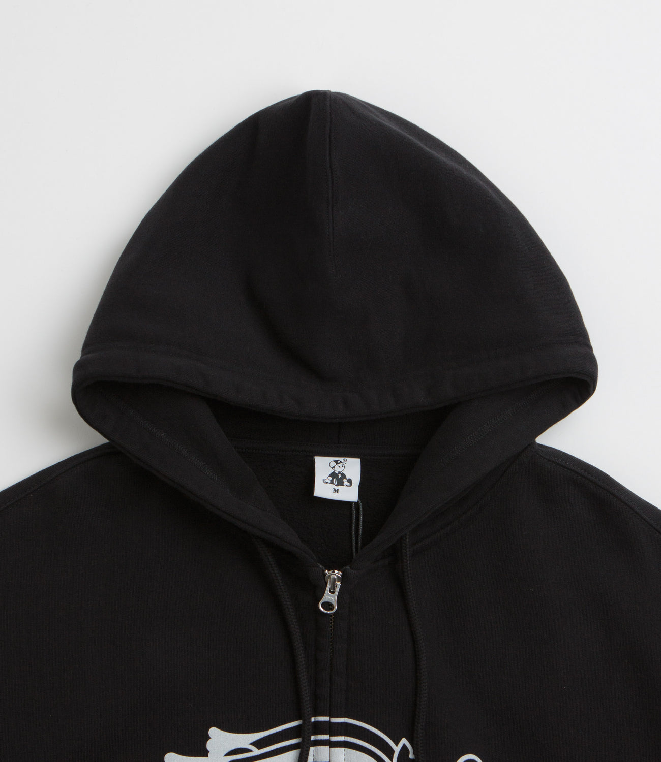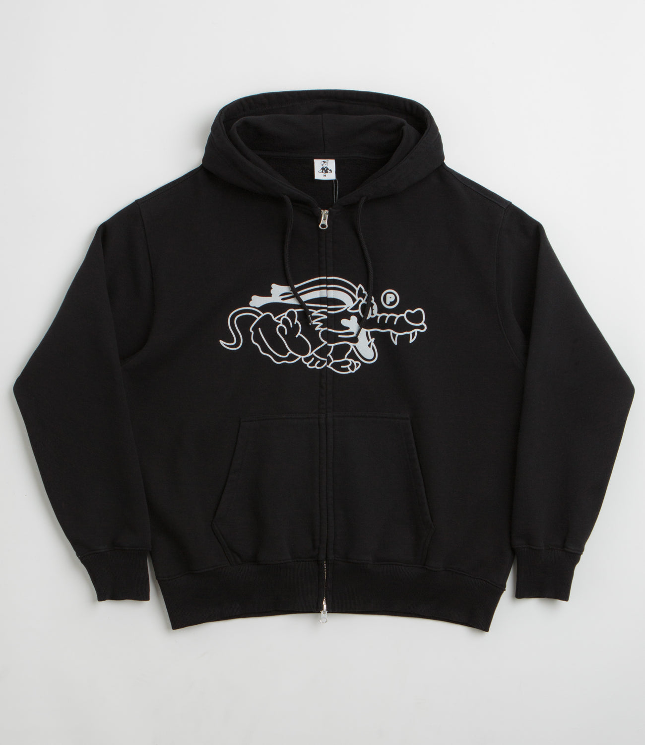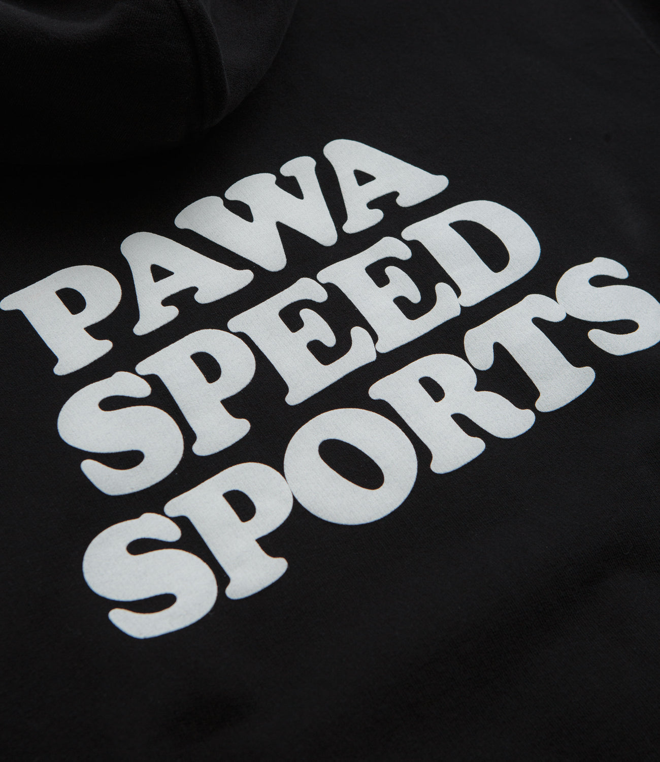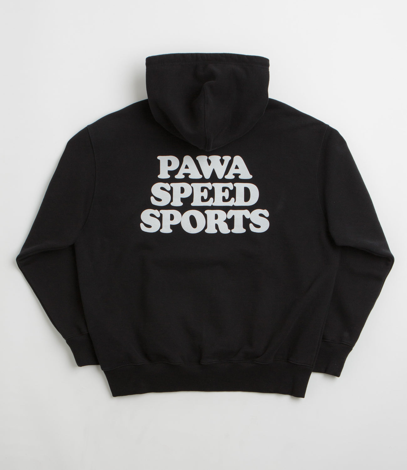 Pawa Speed Sports Doggo Zip Hoodie in Black. Regular fitting and made from 100% cotton, this Pawa hoodie is designed with an adjustable drawcord hood with a full length zipper fastening. Finished in black with a custom enamel zip charm, puff print graphics, two front pockets and ribbed cuffs.