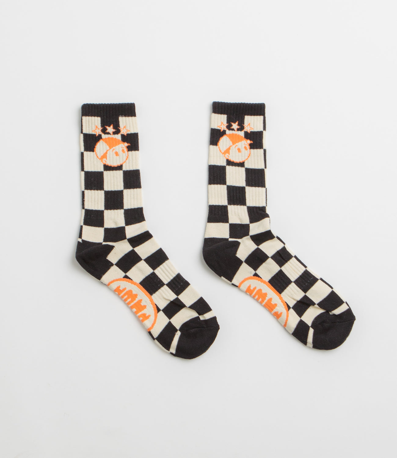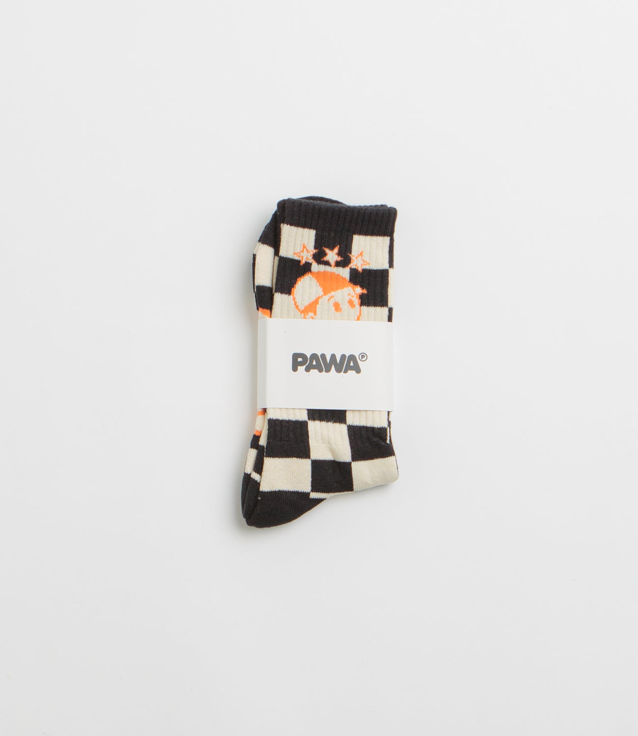 Pawa Speed Sports Racing Socks in Multi. Designed with all-over jacquard knit artwork, these Pawa socks are made from a cotton blend. Finished in black and white with ribbed cuffs and a crew length cut.