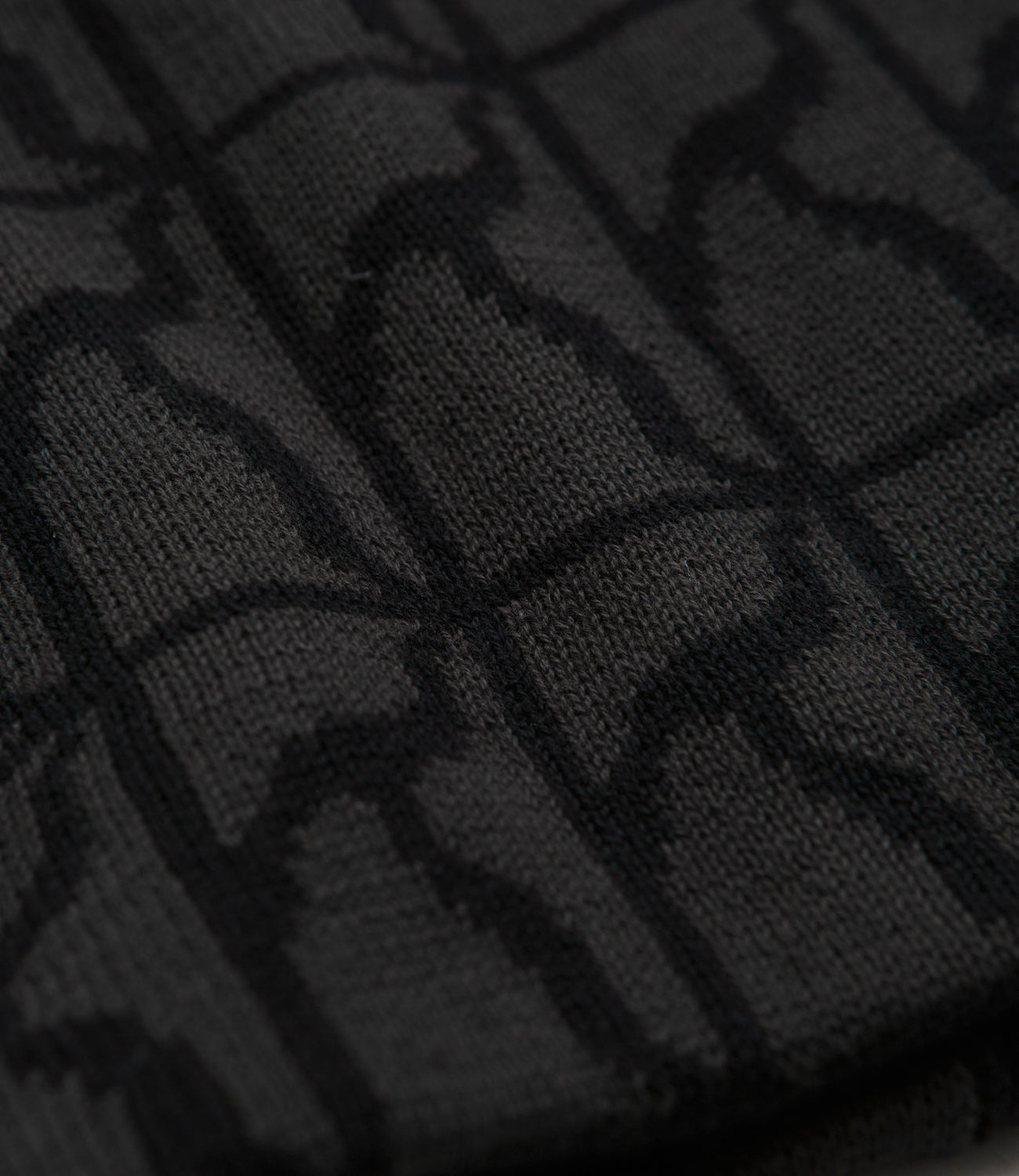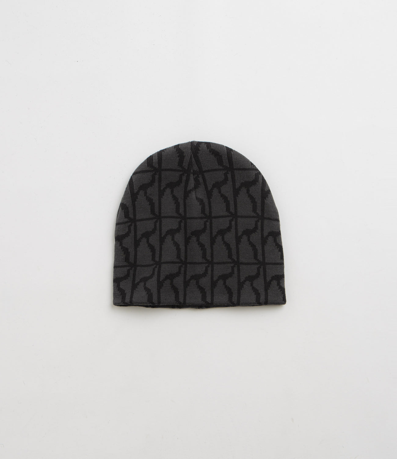 Poetic Collective Logo Repeat Pattern Beanie in Black. Uncuffed and designed with an all-over jacquard knit pattern, this Poetic Collective beanie is made from 100% acrylic. Finished with a soft feel construction and in a classic shade of black.