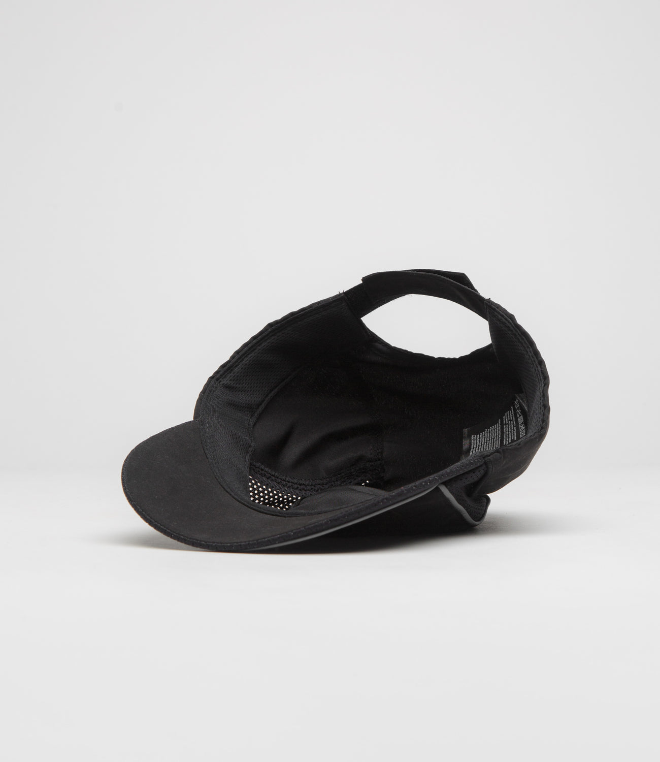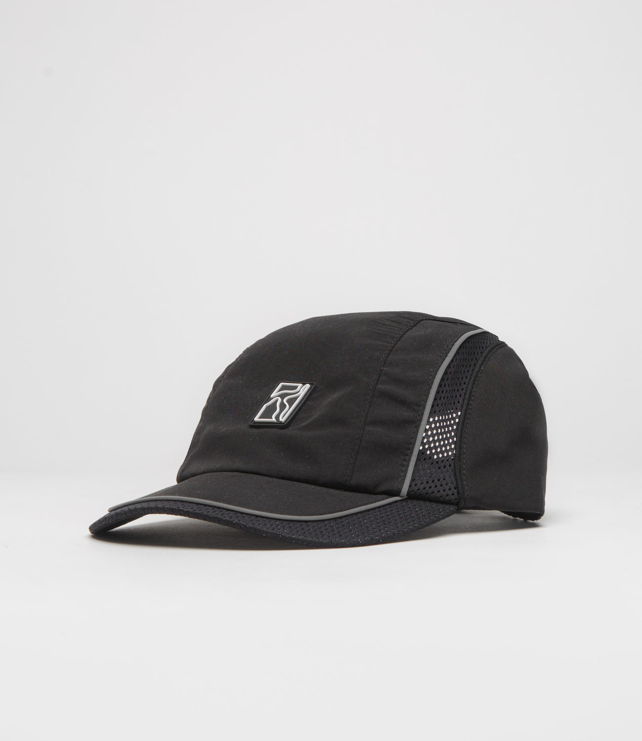 Poetic Collective Sports Cap in Black. Designed with a Coolmax® sweatband, this single sized Poetic Collective cap is made from 100% polyester with mech details. Featuring a curved peak, contrast piped details and an adjustable strap fastening, this black Poetic Collective cap is finished with a rubber patch crown logo.