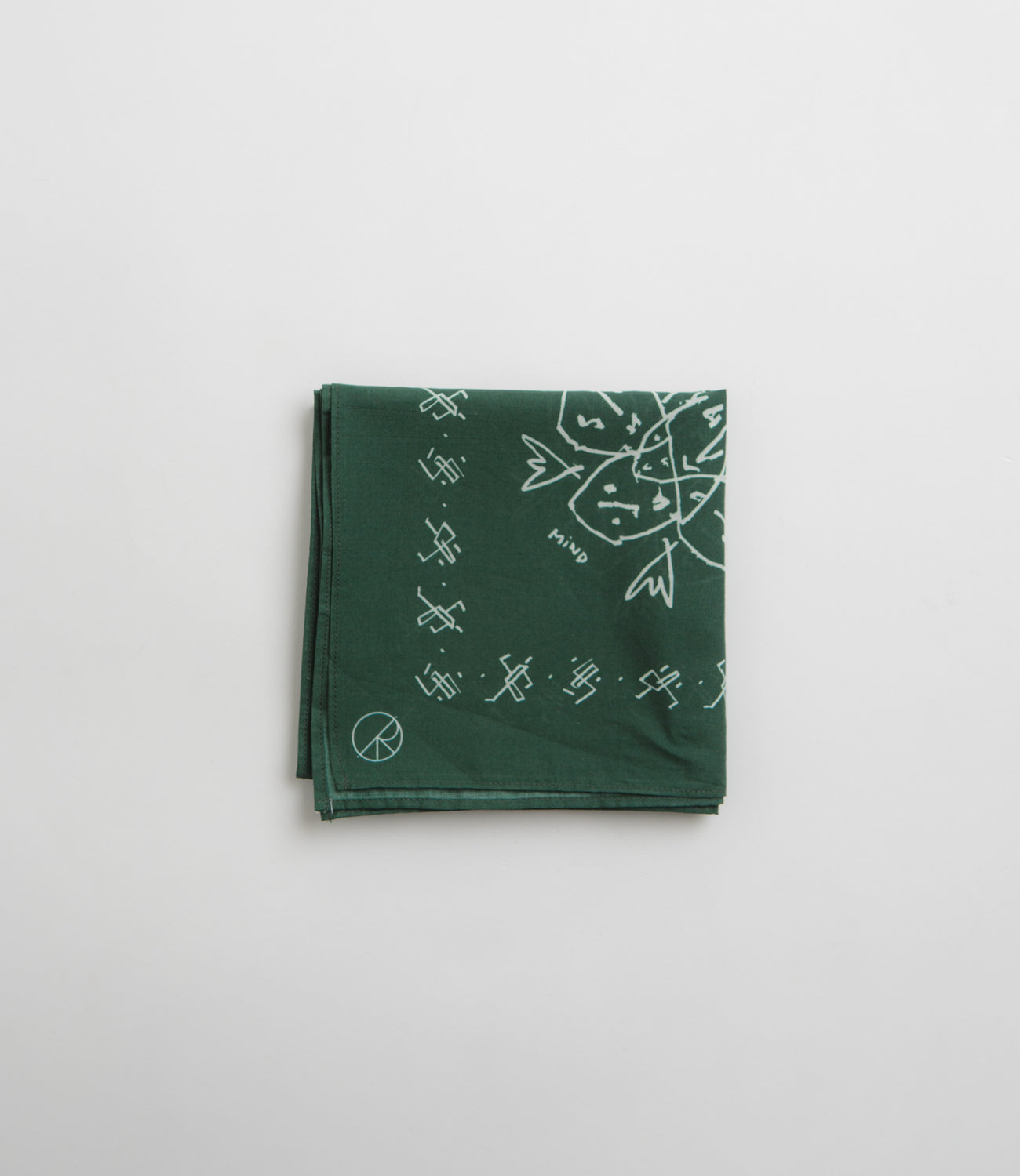 Polar Bandana in Dark Green. Made from 100% cotton, this single sized green Polar bandana is designed with all-over artwork designed by Pontus Alv.