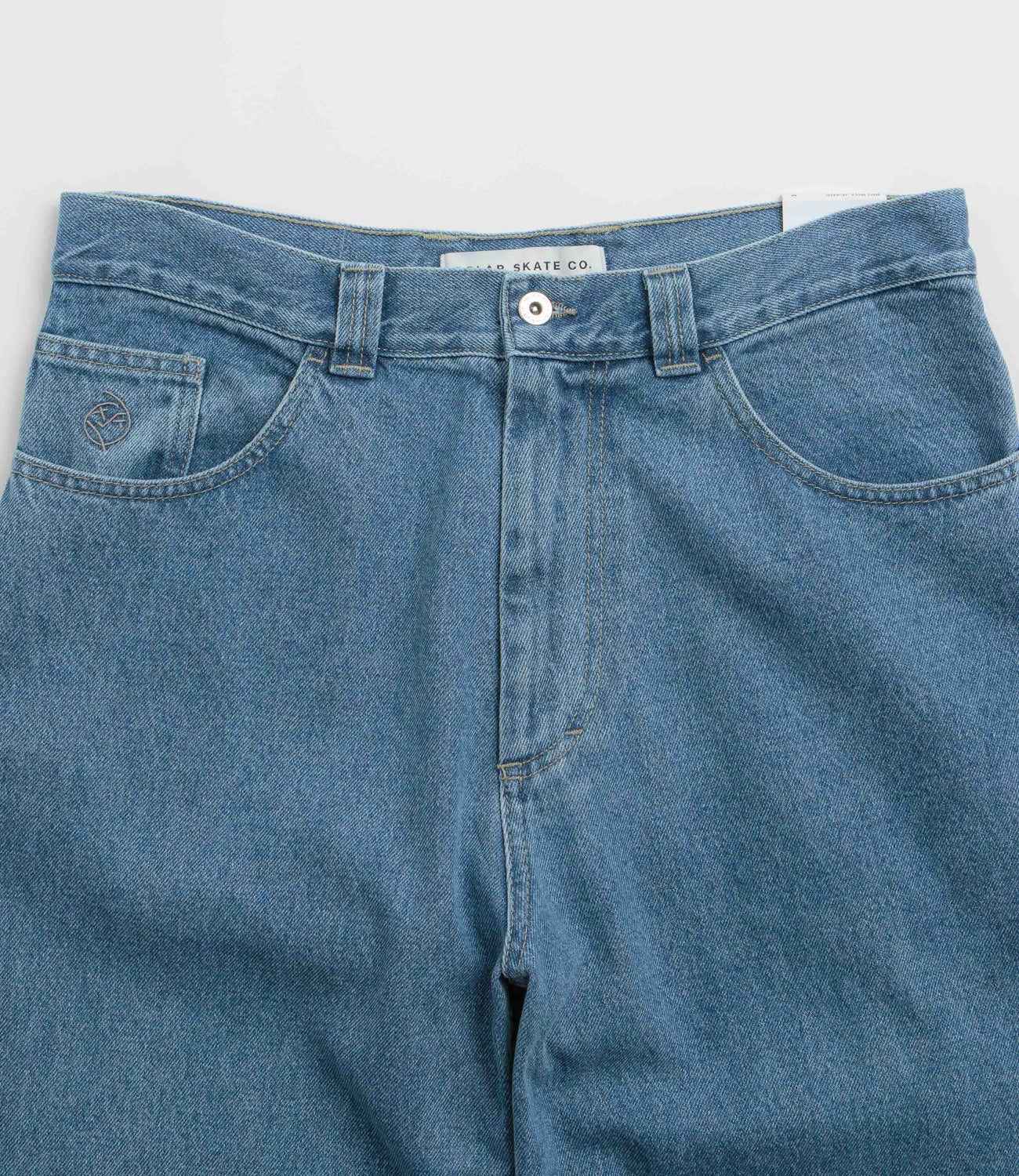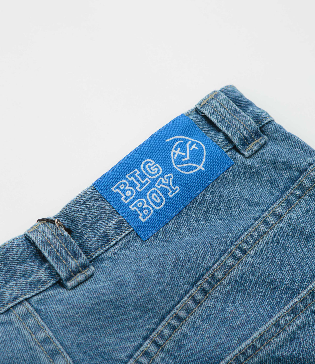 Built to move on and off the board, the Polar jeans are crafted from 100% cotton with contrast-stitched seams and a tapered leg for freedom of movement. Cut with an oversized fit, belt loop waistband, and YKK zipper fly, they’re practical for skating or everyday wear. Finished in mid blue with two front pockets, two rear pockets, an embroidered coin pocket, and a woven Big Boy belt patch.