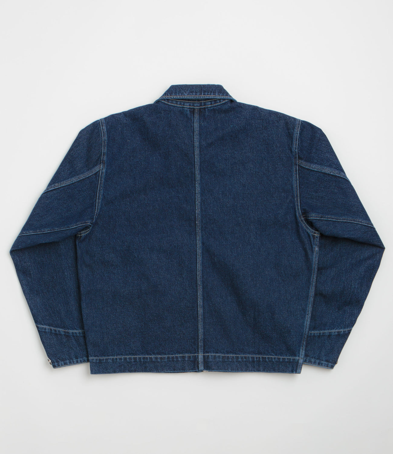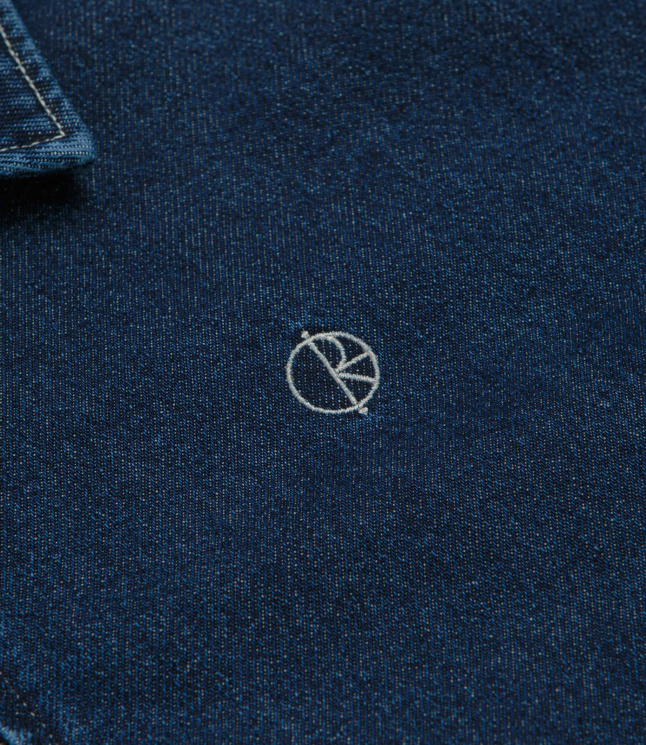 Polar Cliff Jacket in Indigo. Wide fitting with a cropped length, this Polar jacket is made from 100% cotton denim. Stone washed with a stand collar, a semi-hidden two way zipper fastening and adjustable cuffs, this indigo blue Polar jacket is finished with adjustable cuffs, two front pockets, two inner pockets and embroidered branding.
