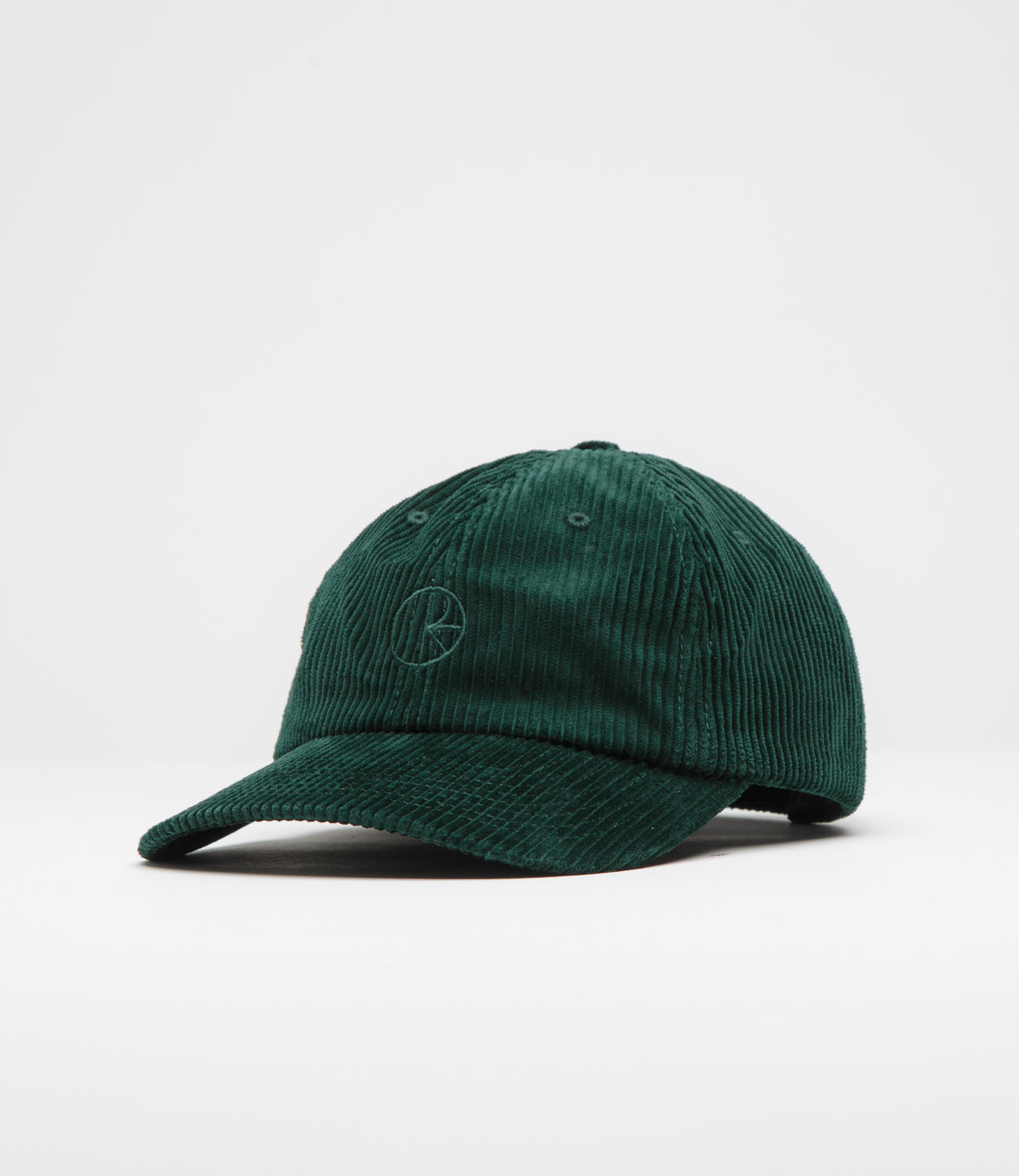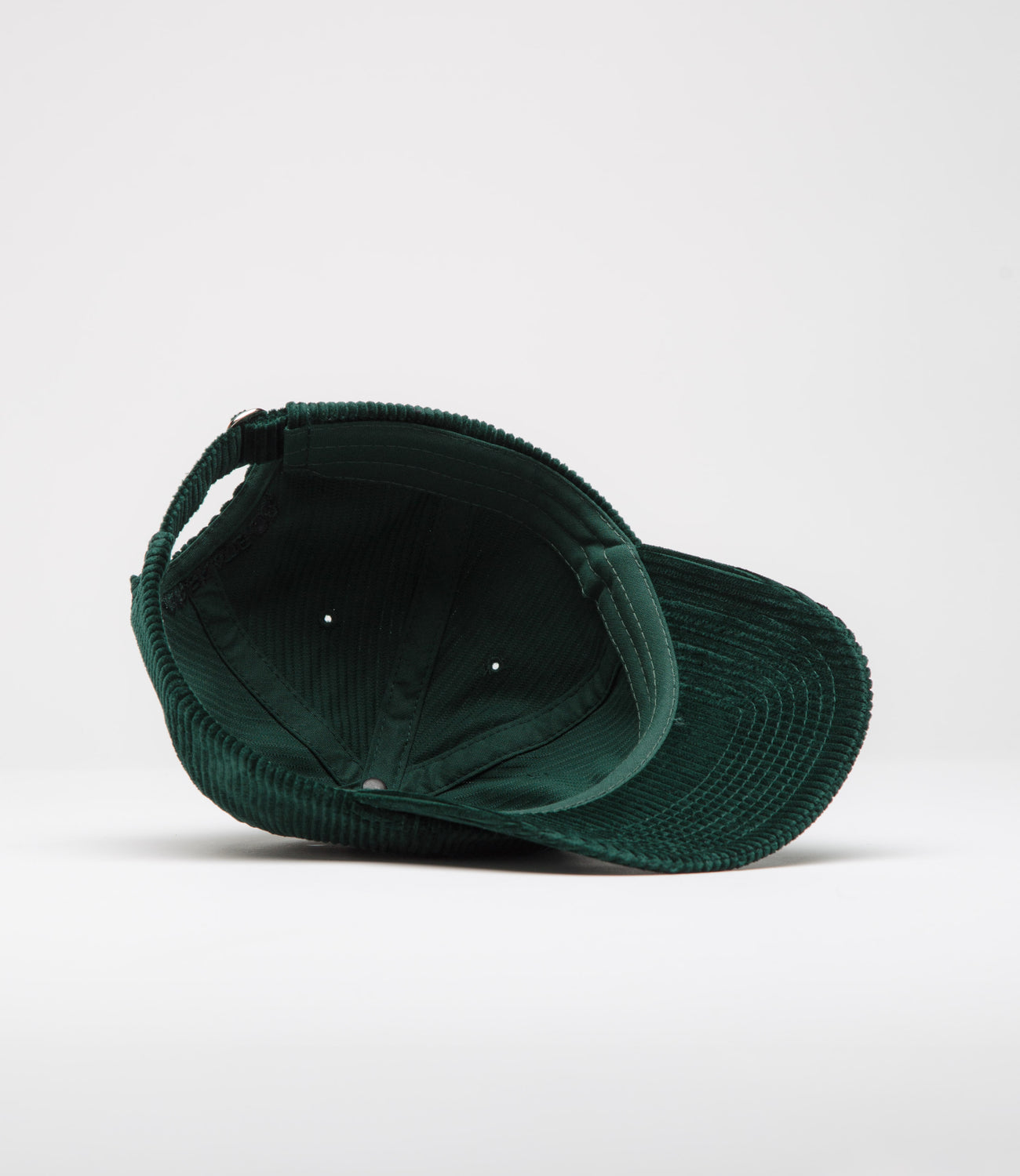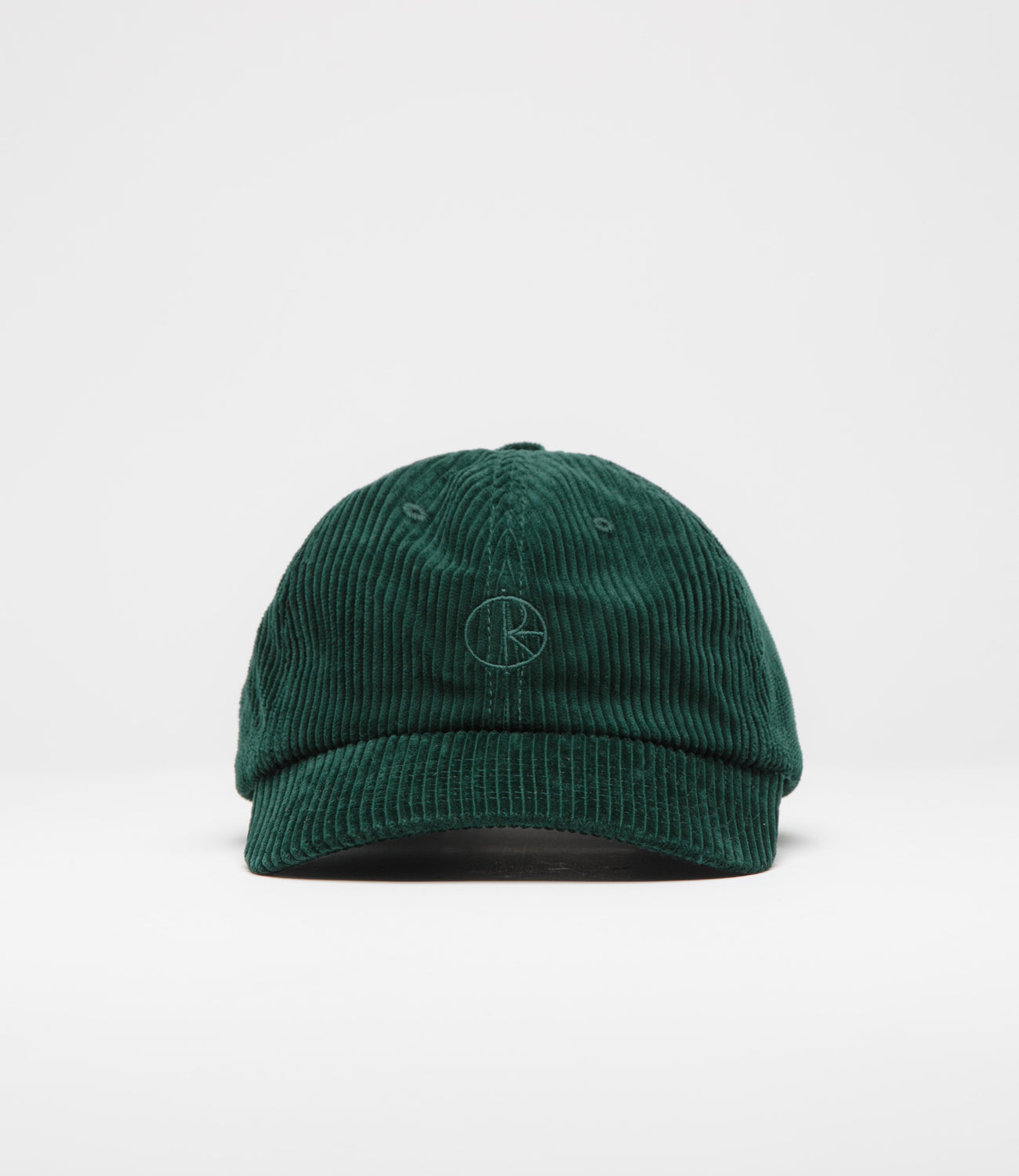 Polar Cord Sai Cap in Dark Emerald. Single sized with a 6 panel profile, this Polar cap is made from 100% cotton corduroy with a rounded brim and a fitted shape. Featuring embroidered airflow eyelets and an adjustable rear fastening, this green Polar cord cap is finished with embroidered logo branding.