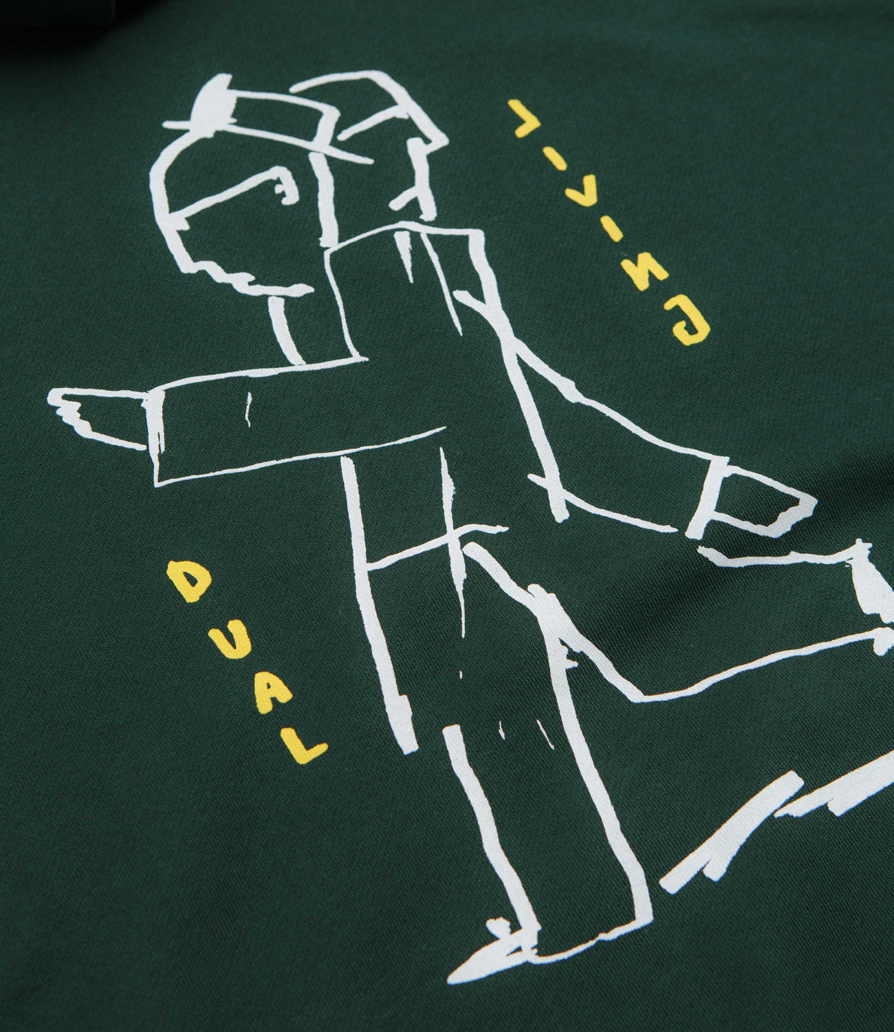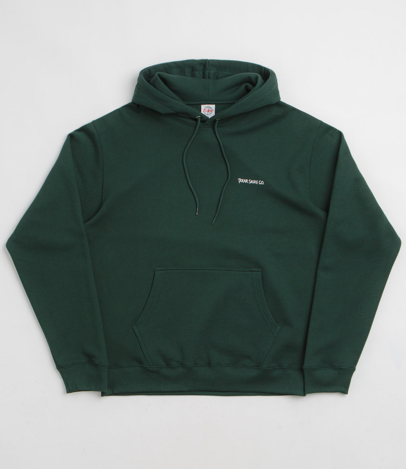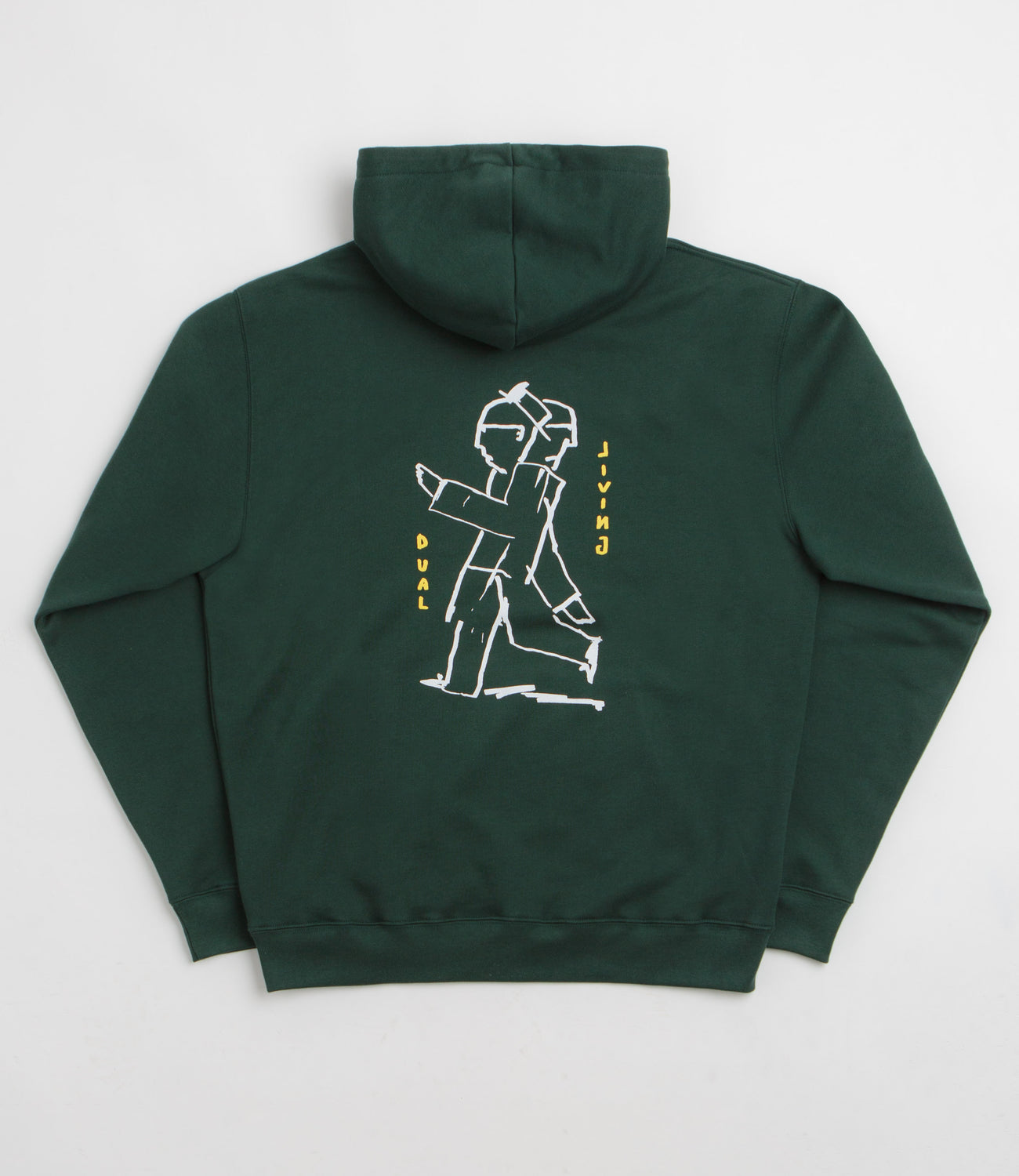 Polar Dual Living Dave Hoodie in Dark Green. Regular fitting and made from 100% cotton, this fleece lined Polar hoodie is designed with an adjustable drawstring hood. Featuring dropped shoulders, ribbed cuffs and a kangaroo front pocket, this green Polar hoodie is finished with printed artwork by Pontus Alv.