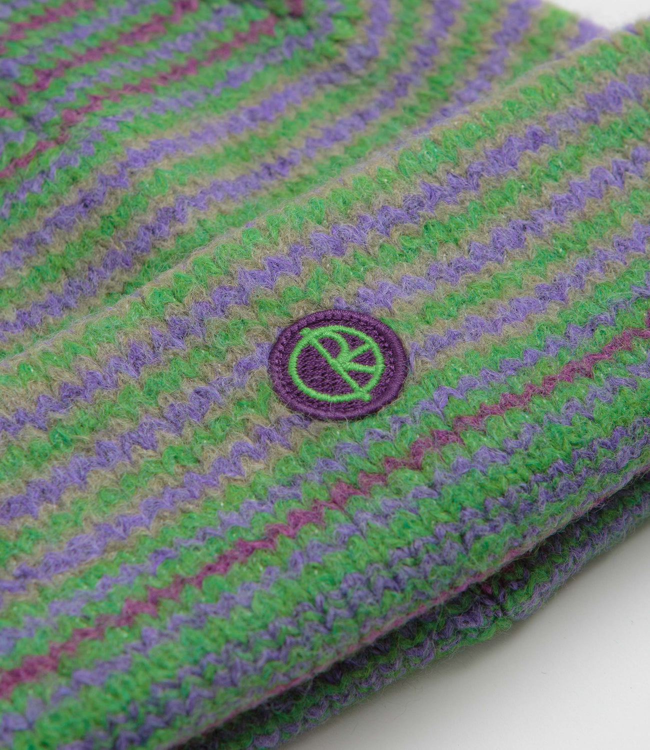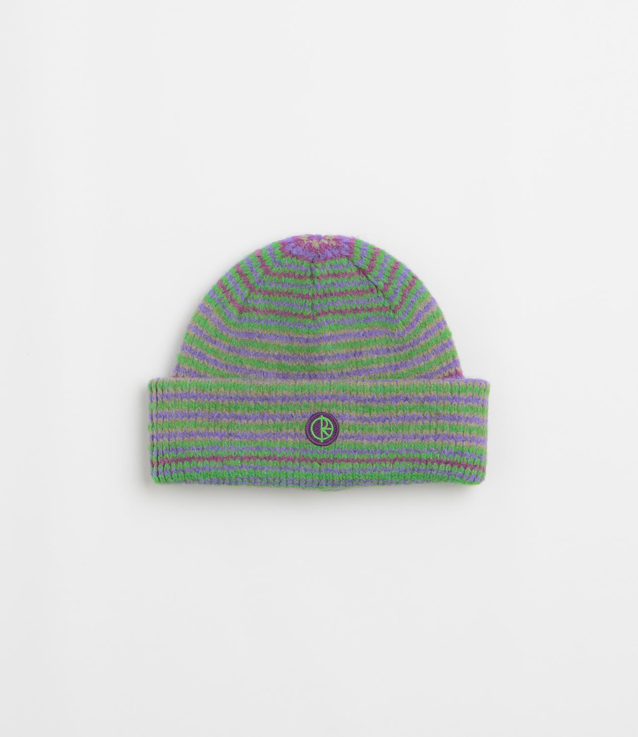 Polar George Beanie in Purple and Green. Single sized with a jacquard knit pattern, this Polar beanie is made from an acrylic-polyamide blend. Finished in purple green with a double-fold design and an embroidered patch.