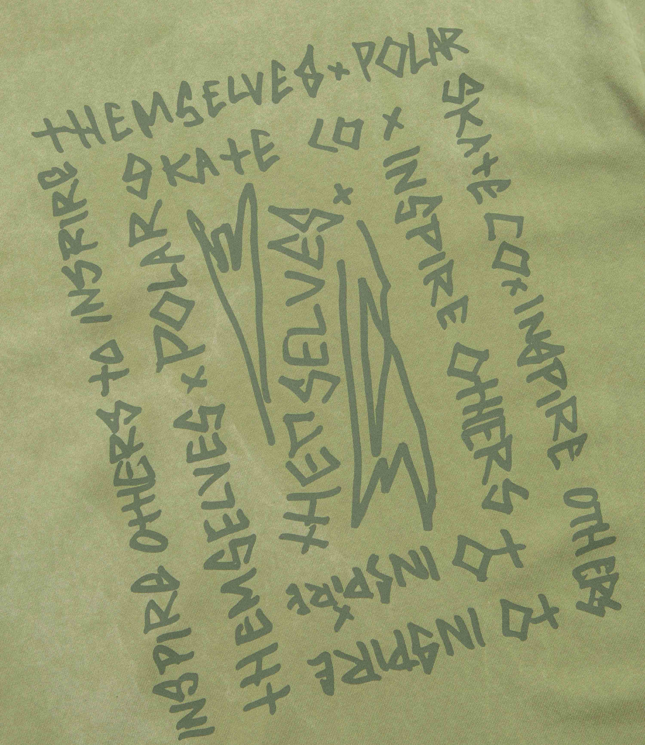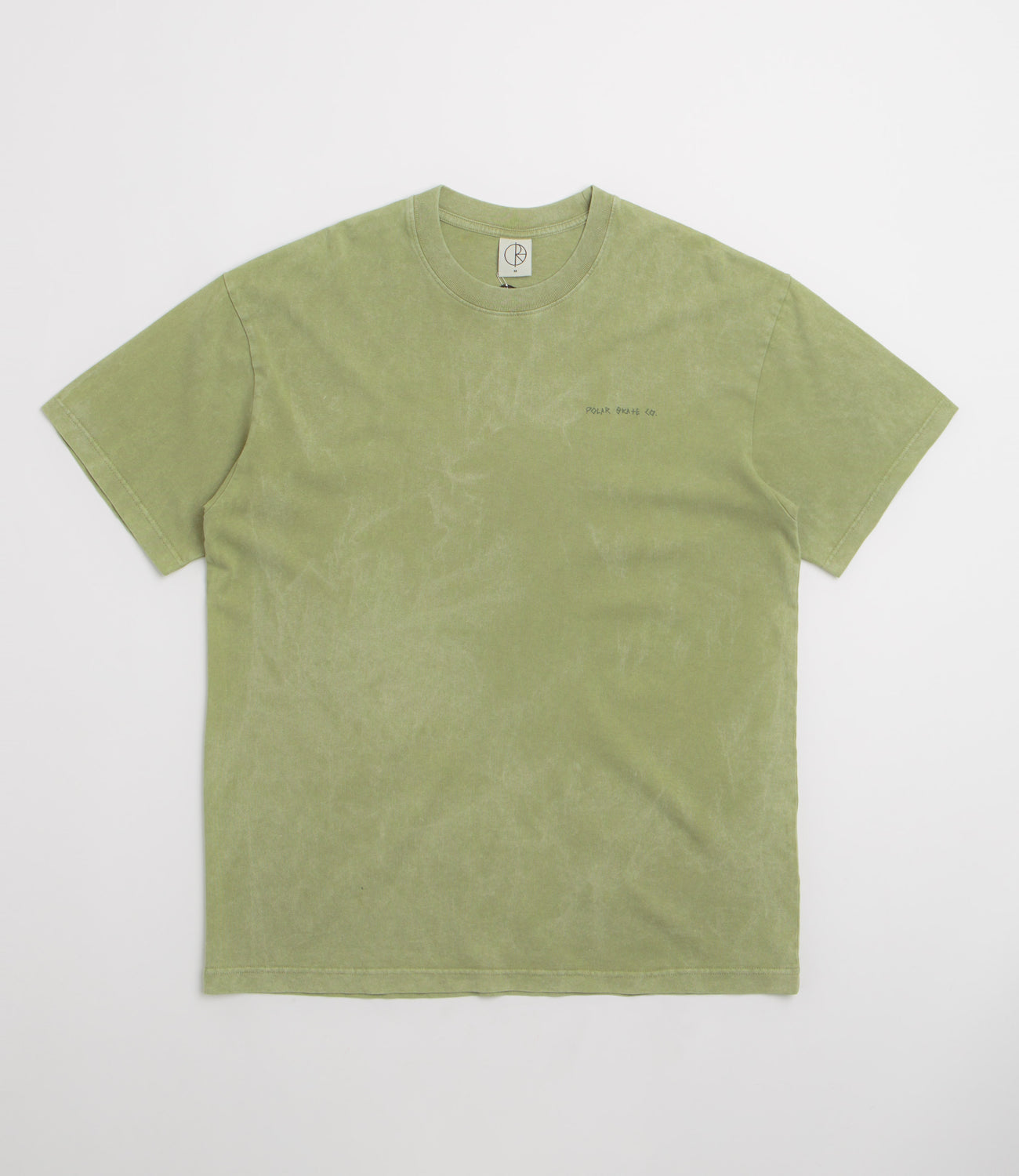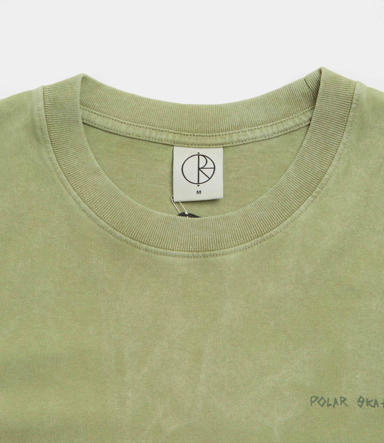Polar IOTIT Acid T-Shirt in Army Green. Made from 100% cotton, this Polar t-shirt is designed with an acid-like garment wash. Featuring a rib knit collar and a straight hem, this green Polar t-shirt is finished with printed graphics by Pontus Alv.