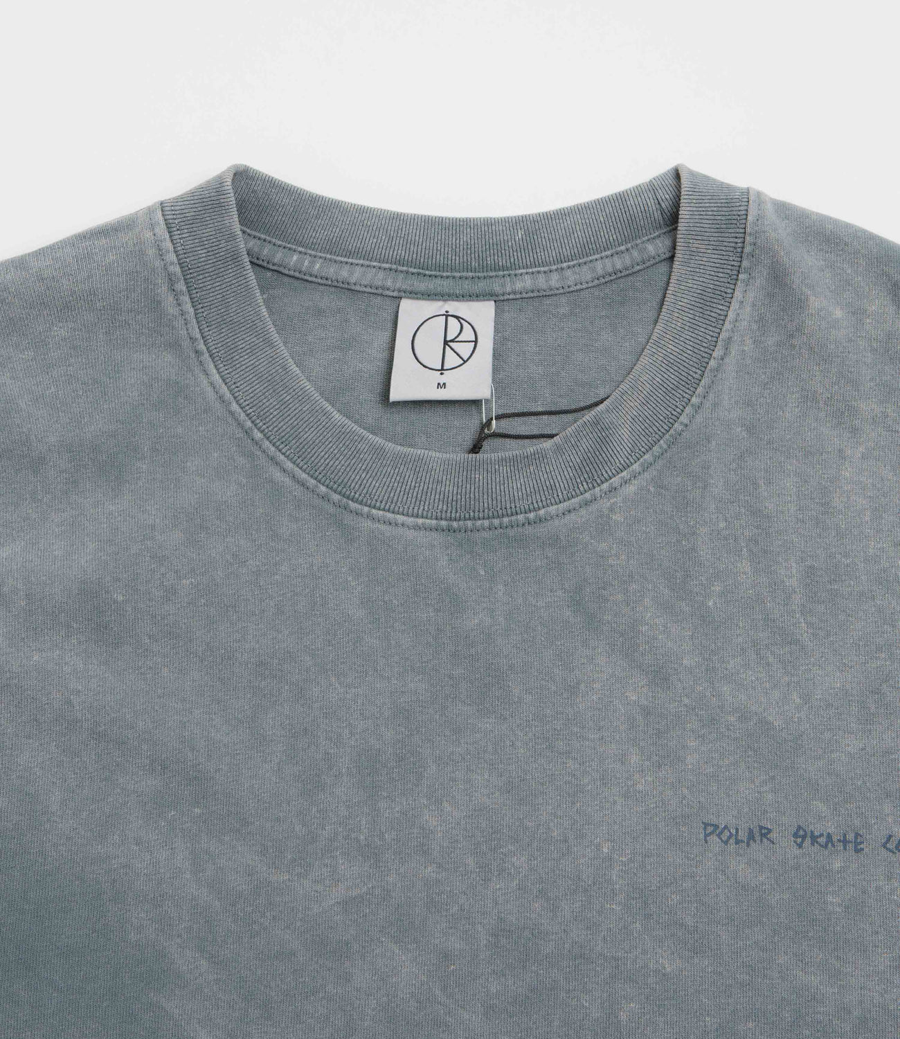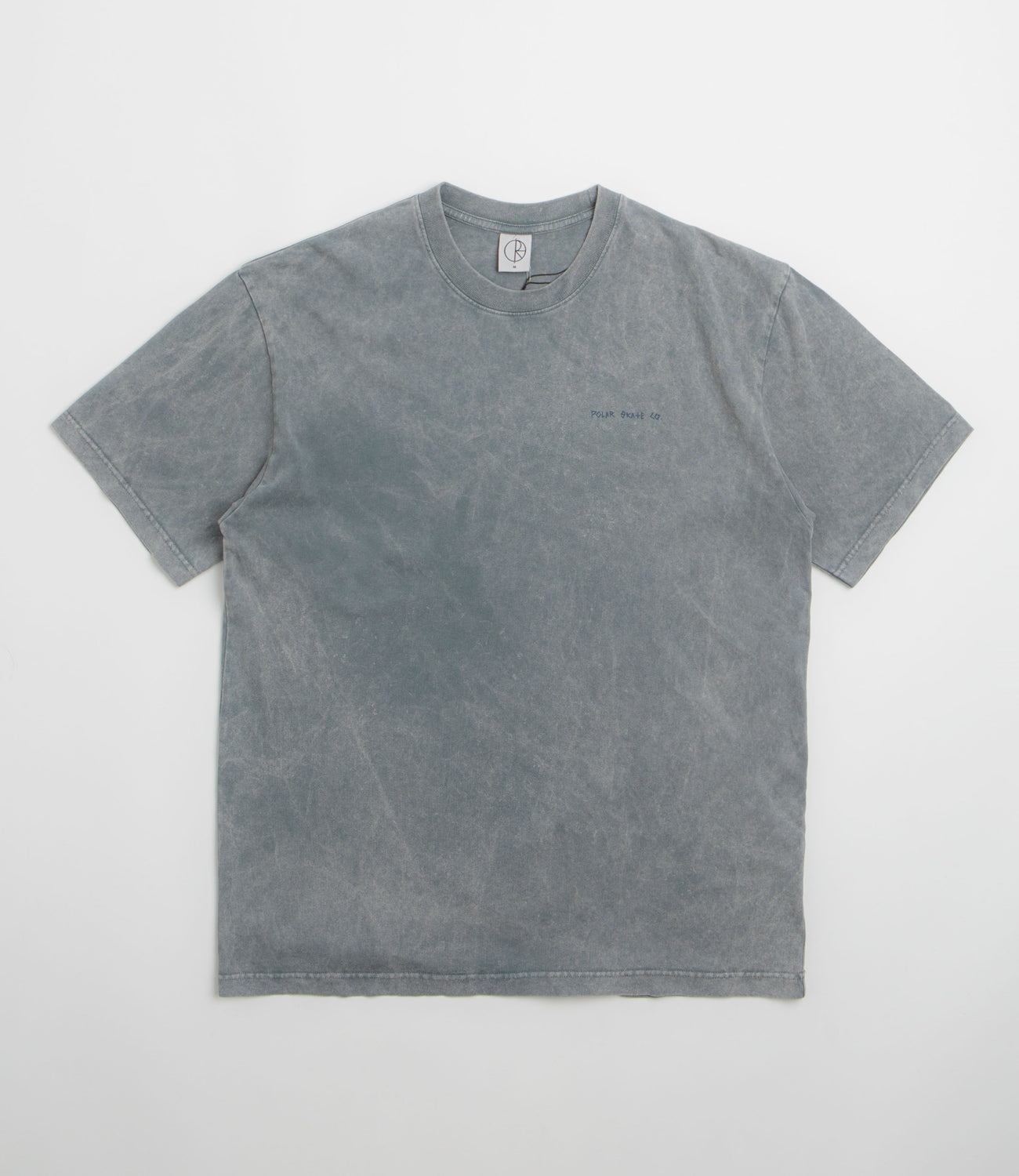 Polar IOTIT Acid T-Shirt in Grey. Regular fitting and made from 100% cotton, this Polar t-shirt is designed with an acid-like garment wash. Featuring a rib knit collar and a straight hem, this grey Polar t-shirt is finished with screen printed graphics by Pontus Alv.