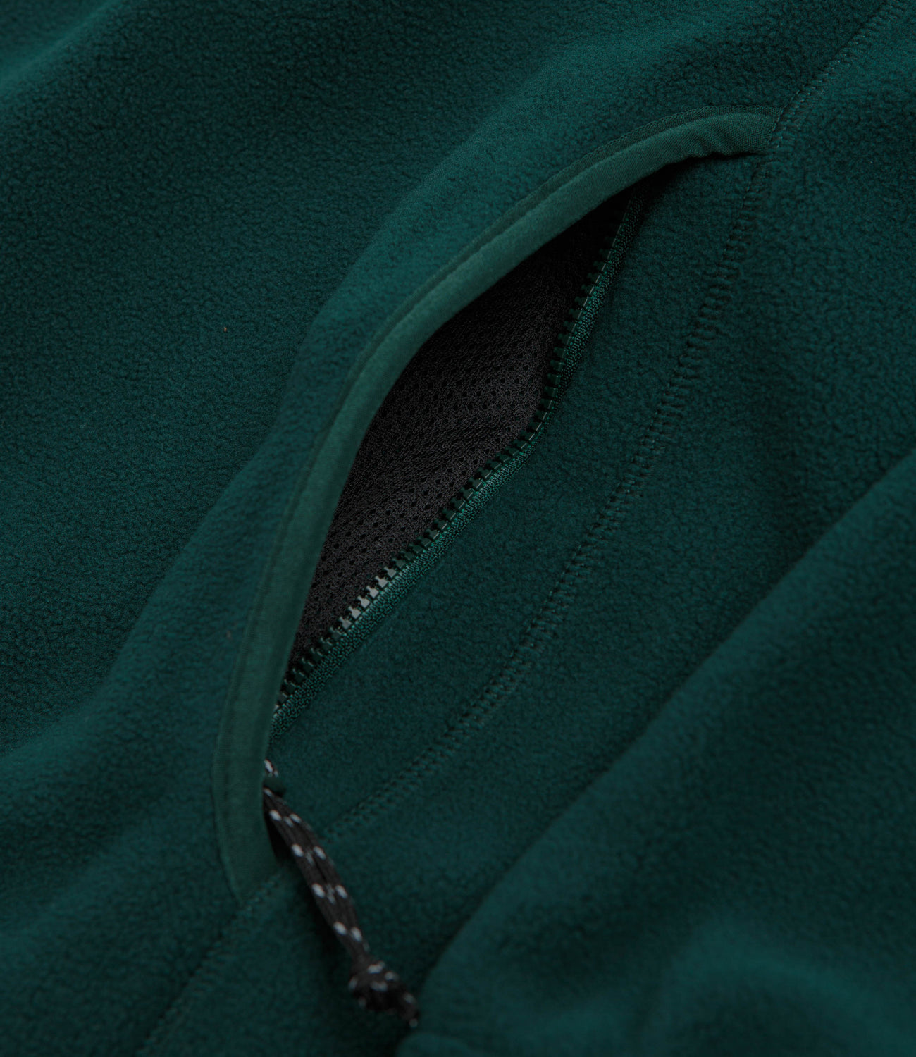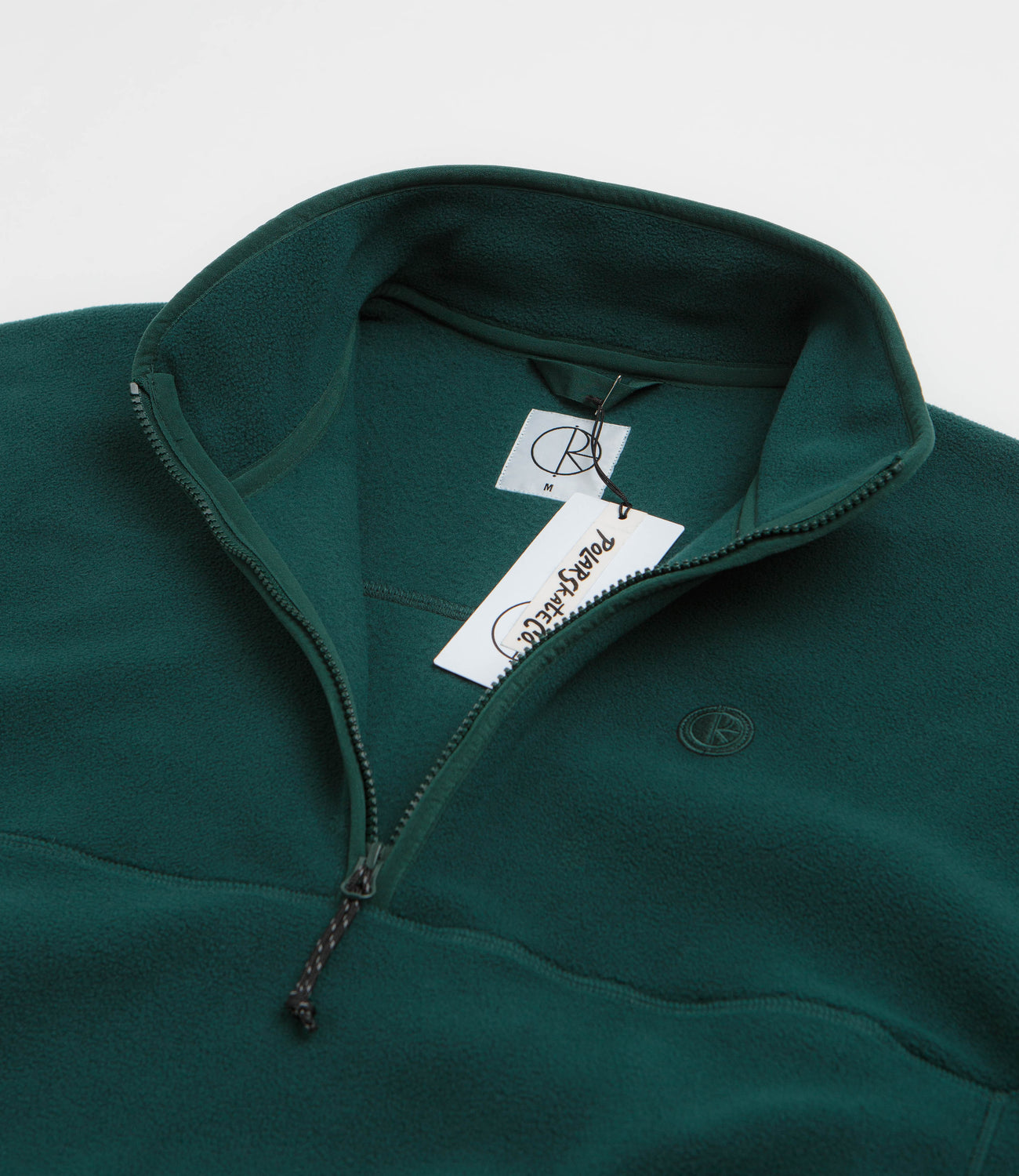 Polar Ivan Half Zip Sweatshirt in Dark Emerald. Relaxed fitting with dropped shoulders and a half-length zipper, this Polar sweatshirt is made from 100% polyester fleece. Featuring a stand collar, a panelled chest and elasticated cuffs, this dark green Polar sweater is finished with two front pockets and embroidered branding.