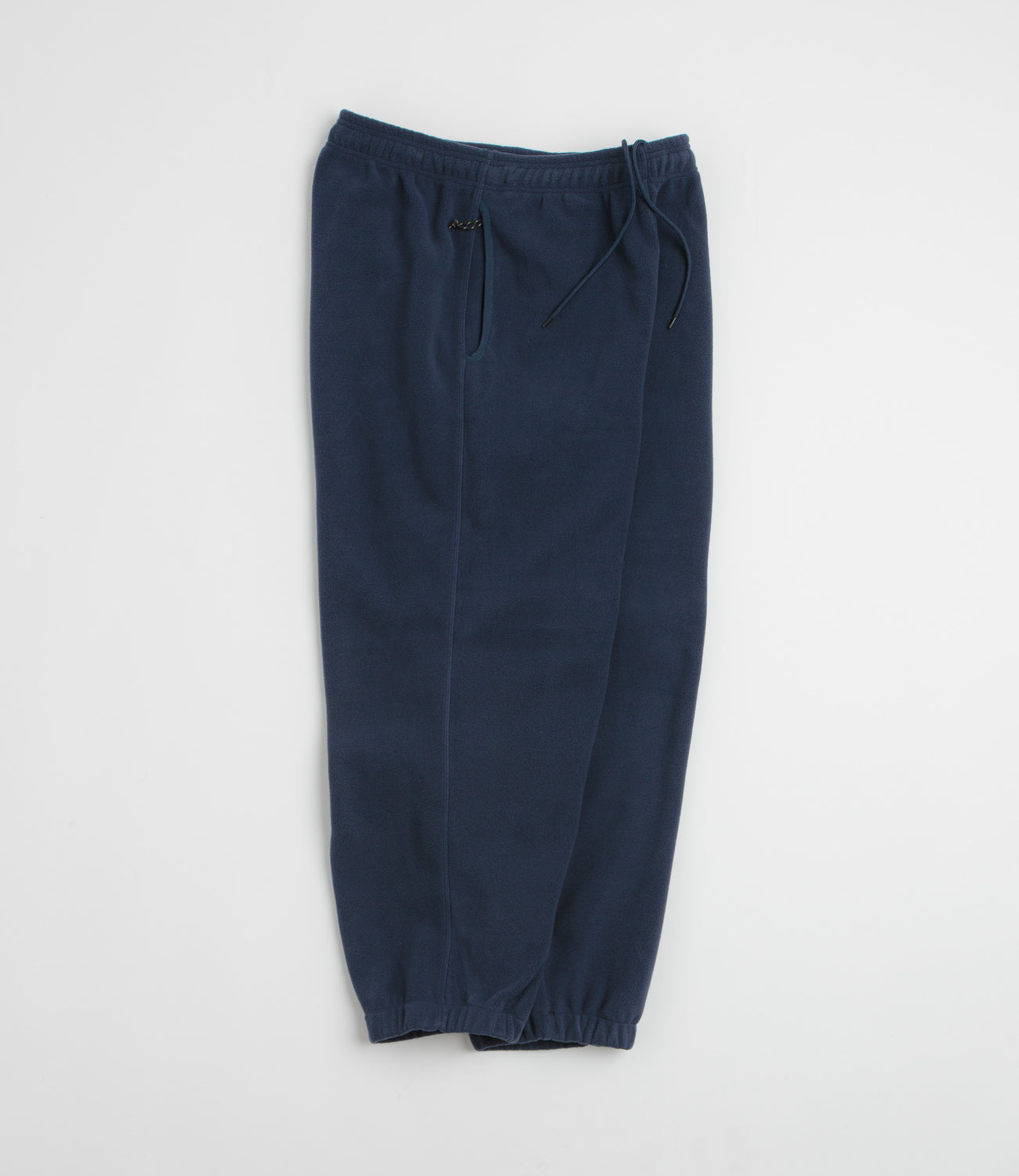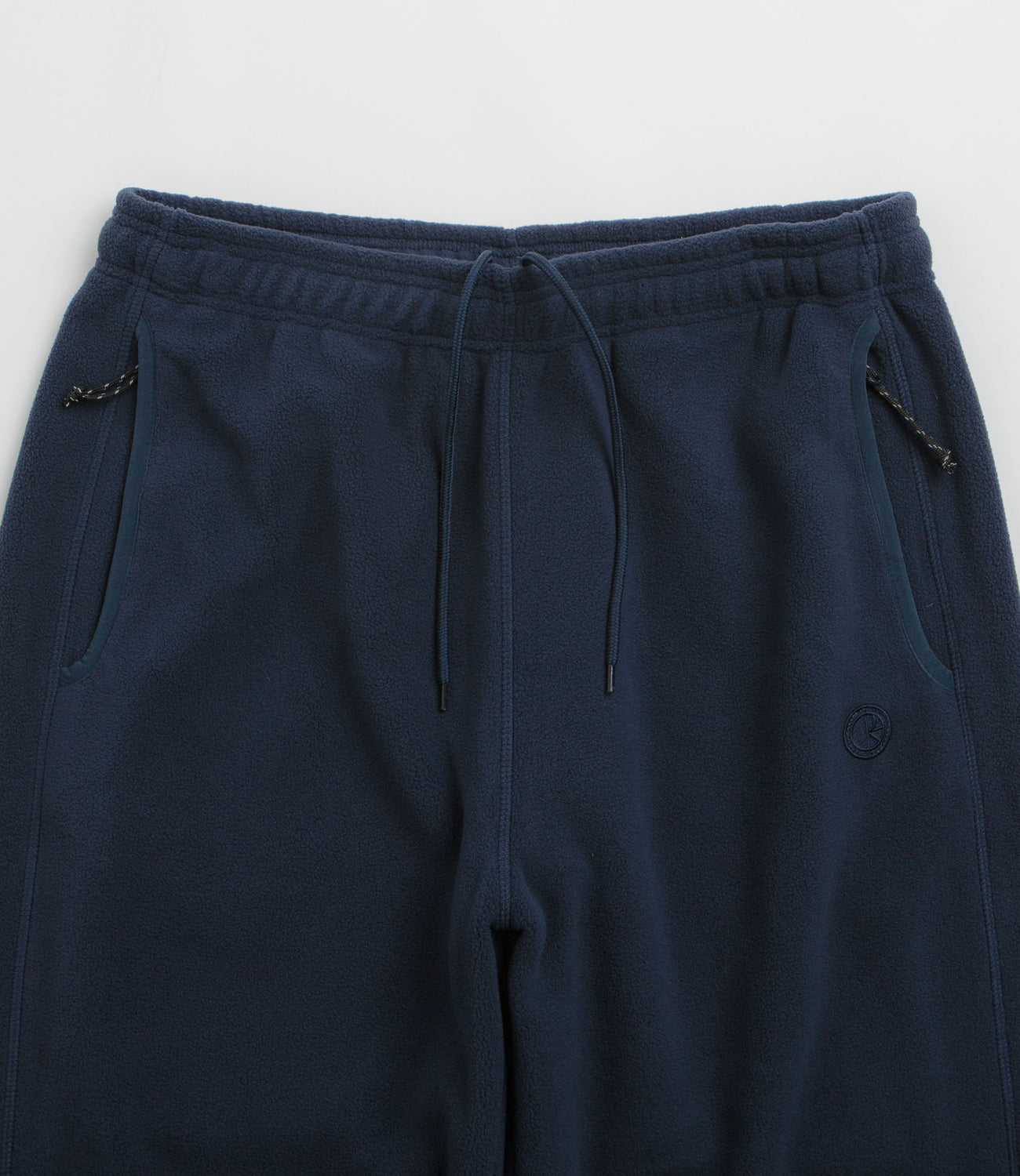 Polar Ivan Sweatpants in Grey Blue. Straight legged with a relaxed fit, these Polar sweatpants are made from 100% polyester fleece. Featuring an elasticated drawstring waist and two zippered side pockets, these grey blue Polar sweatpants are finished with elasticated cuffs and embroidered patch detailing.