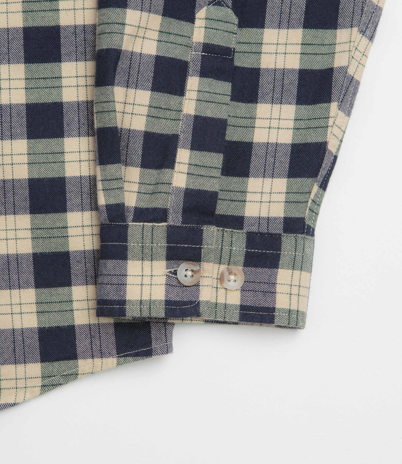 Cut from 100% cotton with a soft brushed flannel finish, this shirt balances comfort with easy wear. The loose fit is shaped with centre back pleats and a curved hem, while a stand collar and full-length button fastening keep it classic. Details include a single chest pocket with woven label, plus buttoned barrel cuffs for a clean finish.