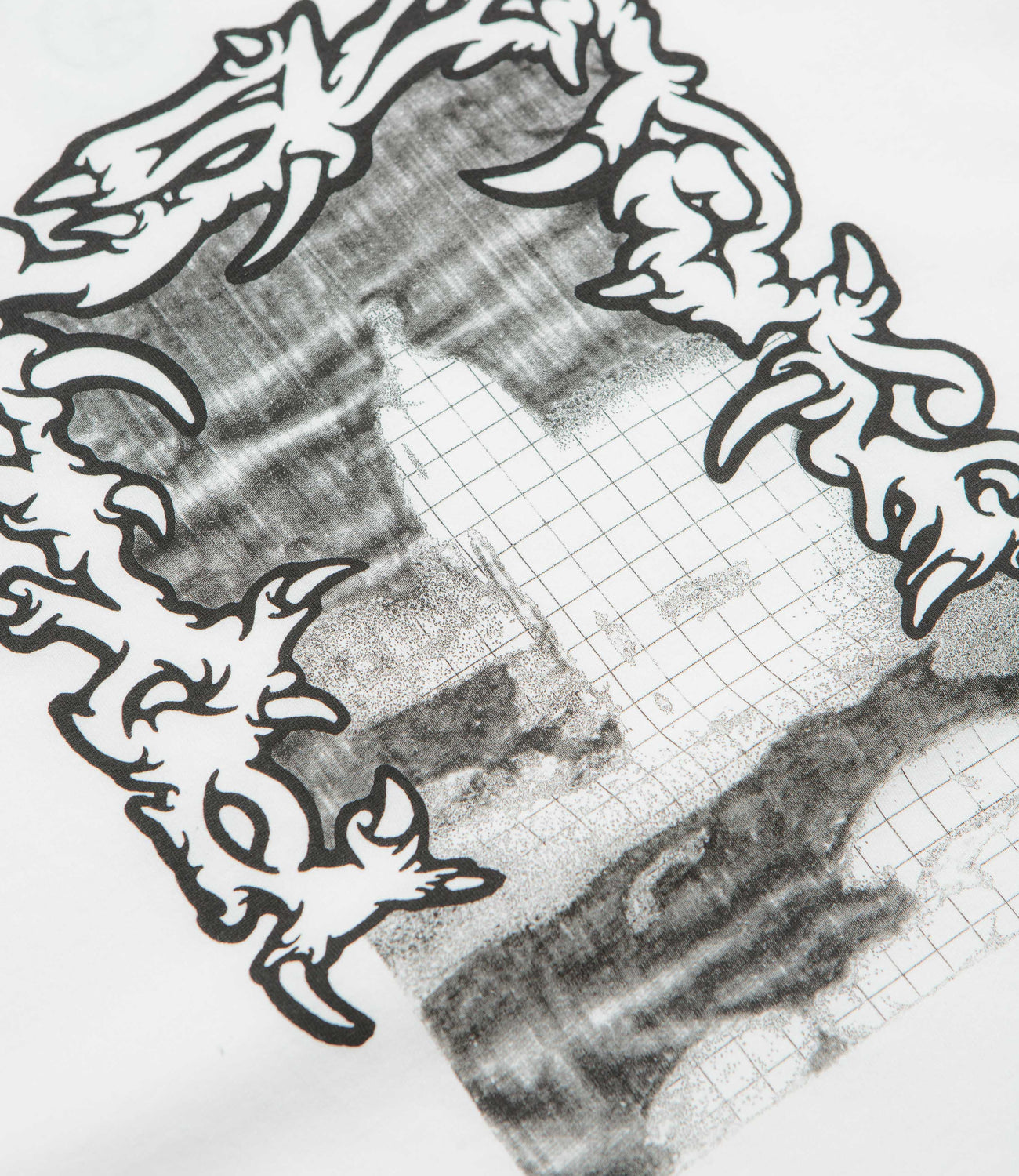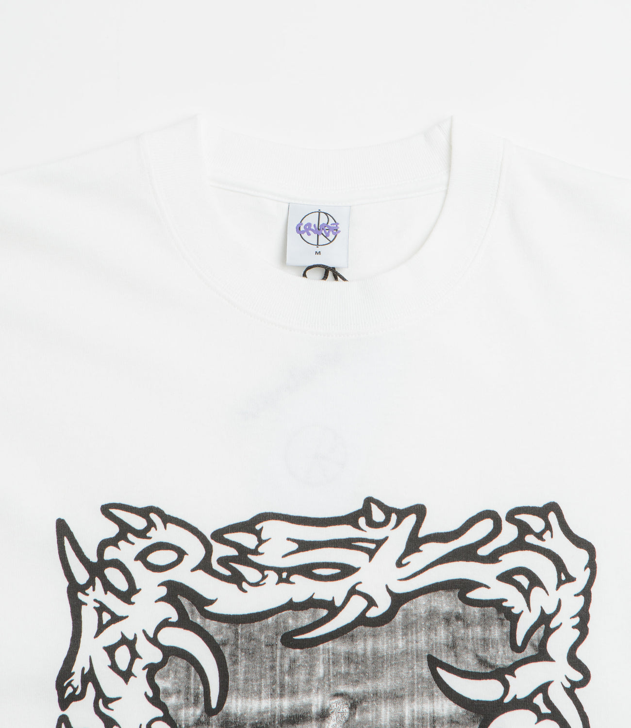 - Screen-printed graphic featuring artwork by Crude