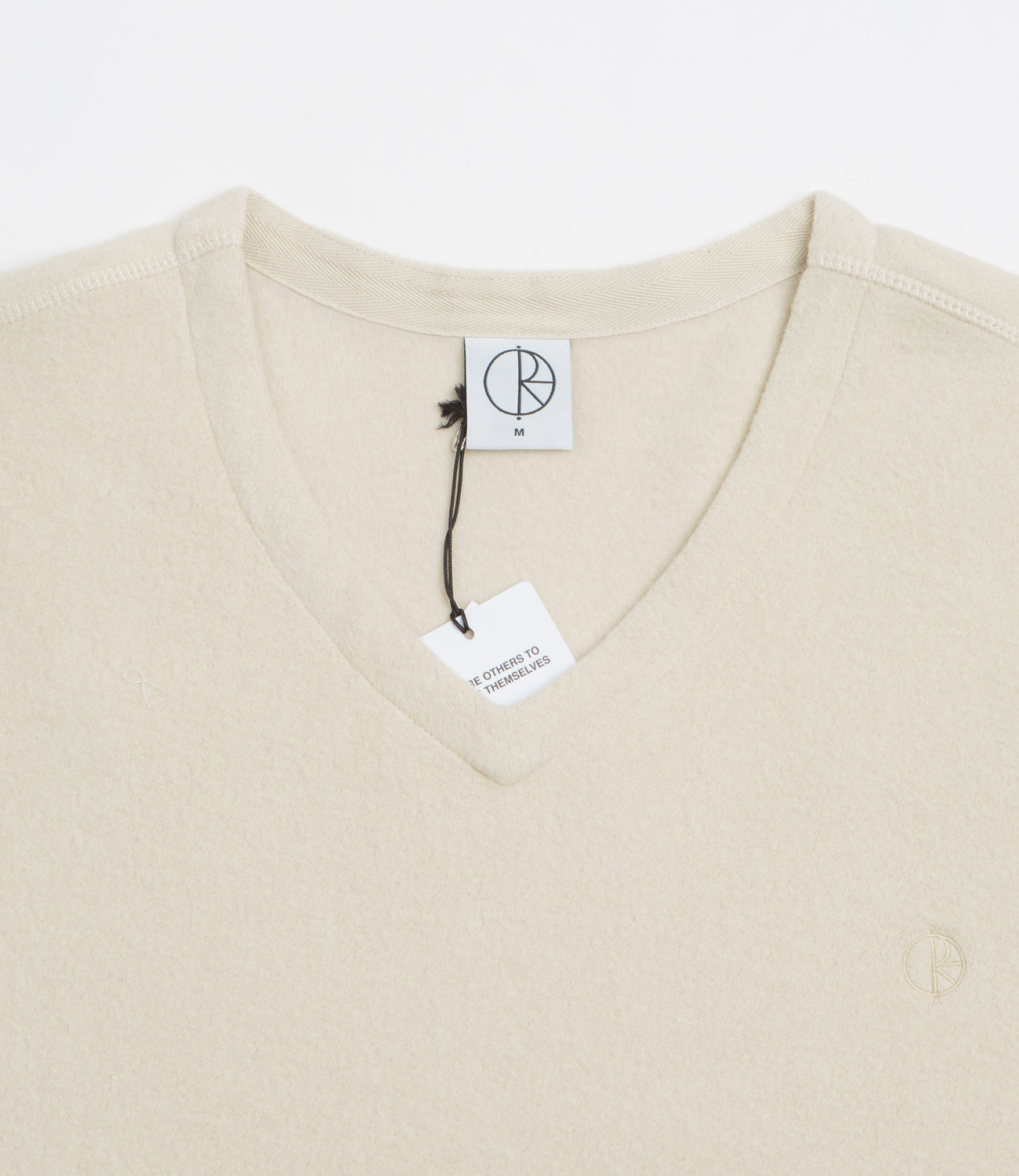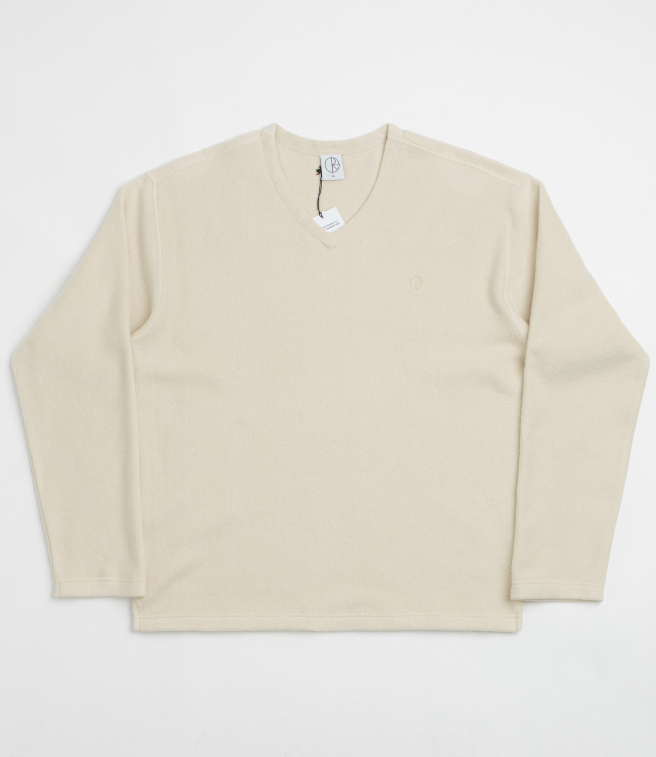 Polar Scott Sweatshirt in Sand. Made from 100% cotton, this loose fitting Polar sweatshirt is styled with a brushed inner and a V-neck collar. Finished in beige with dropped shoulders, a stepped hem and an embroidered logo.
