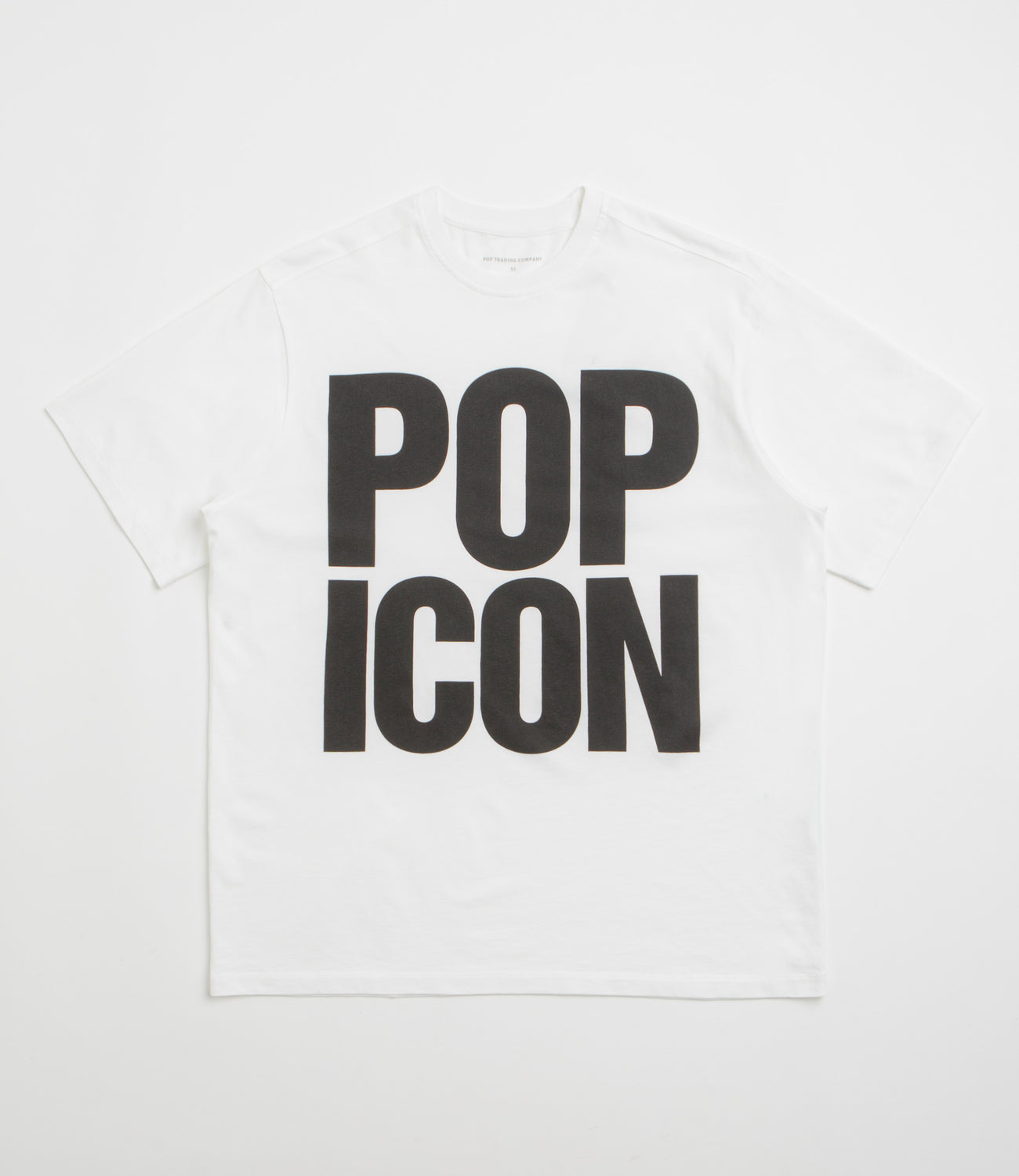 Pop Trading Company Pop Icon T-Shirt in White. Regular fitting and made from 100% cotton, this Pop Trading Company t-shirt is designed with a rib knit collar and herringbone neck tape. Finished in white with printed artwork and printed logo branding.