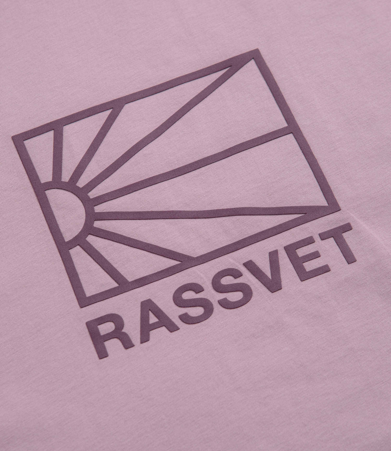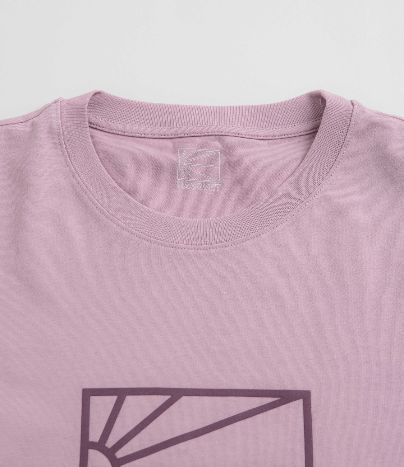 Rassvet Big Logo T-Shirt in Pink. Made from 100% cotton, this new season Rassvet t-shirt is designed with a classic crew collar and a straight cut hem. Finished in a shade of pink with tonal stitched seams and with a printed centre chest graphic.