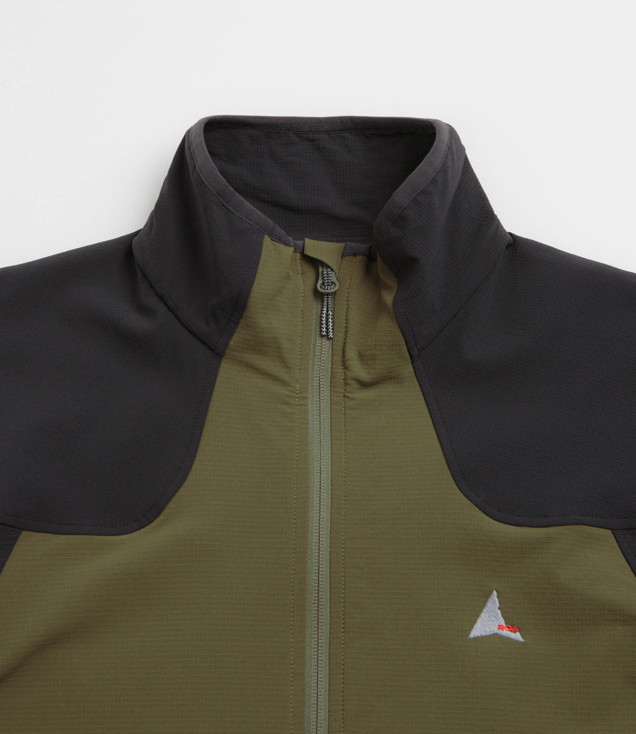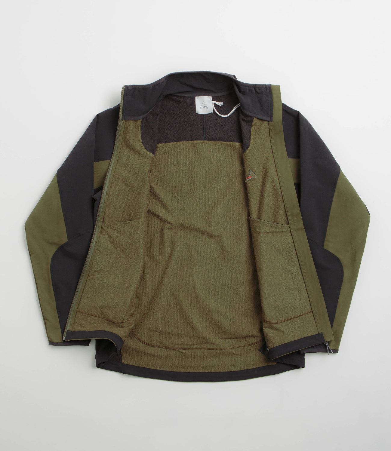 ROA Softshell Jacket in Kangaroo Black. Regular fitting and crafted from a polyamide-polyester blend, this softshell ROA jacket is designed with a classic high-rise collar. Featuring a full length zipper fastening, a panelled chest and with two zipped front pockets, this black ROA jacket is finished with elasticated cuffs and with embroidered logo branding.