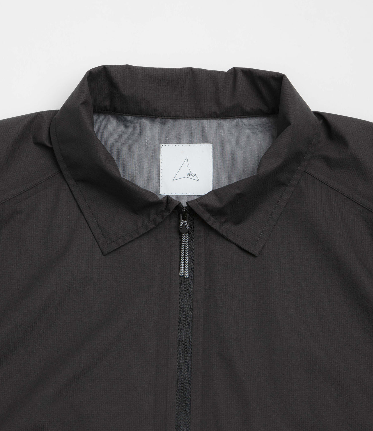 ROA Zip Up Shirt Jacket in Black. Tailored to a regular fitting from 100% cotton, this hybrid ROA jacket is styled with a full length zipper fastening, panelled sleeves and adjustable cuffs. Featuring a straight cut hem and a classic stand collar, this black ROA shirt jacket is finished with two front pockets, two rear back panel pockets and a single zippered storage pocket.