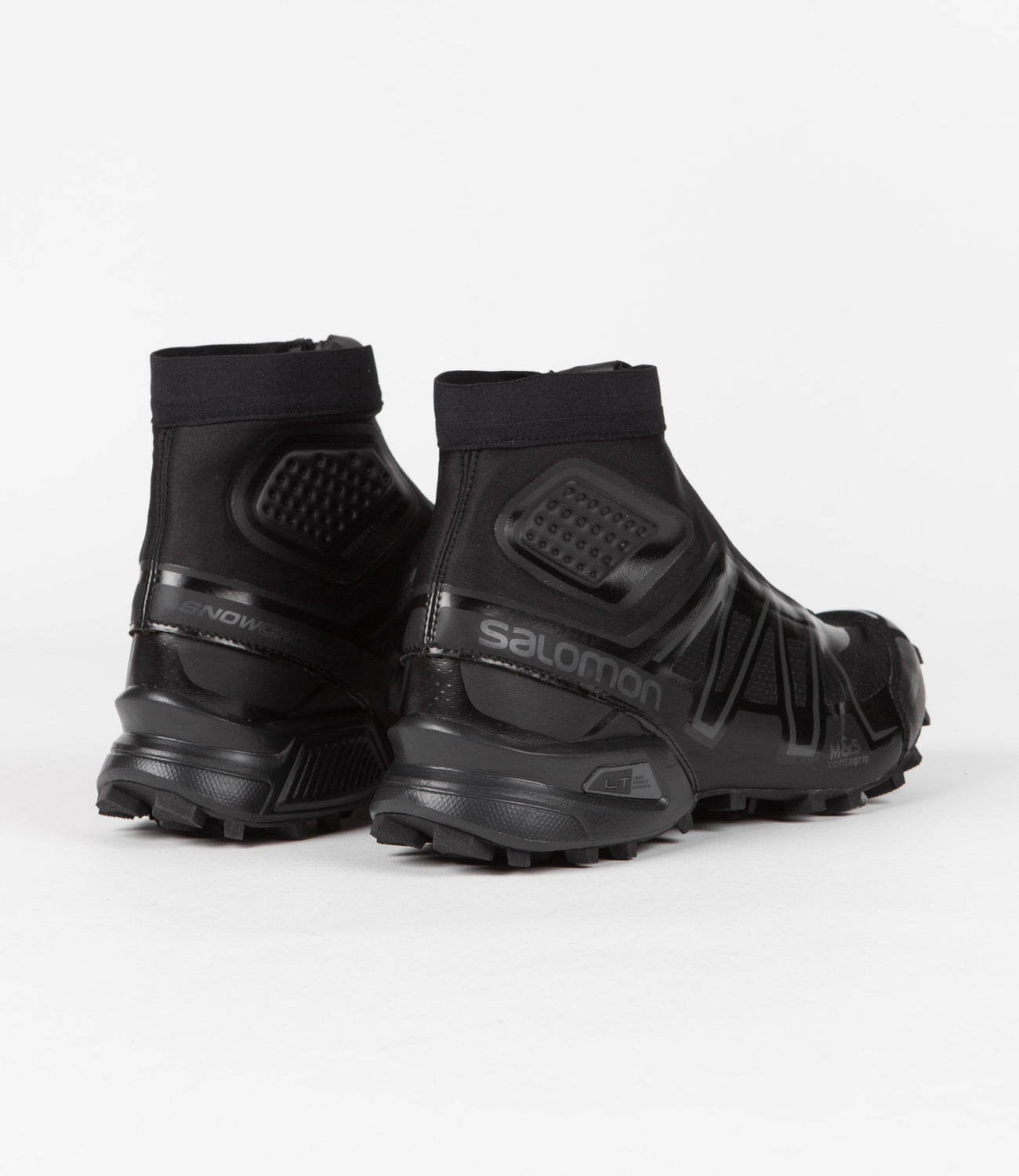 Salomon Snowcross Shoes in Black and Magnet. Inspired by the brand’s iconic Speedcross silhouette and designed with the harshest of winter conditions in mind, this Salomon Snowcross is styled with resilient TPU and mesh uppers with breathable underlayers and a stitch-free welded construction. Featuring a Clima Salomon membrane with an integrated gaiter, SensiFit™ cradling and dual-density OrthoLite® insoles, this zippered black Salomon Snowcross also features a grippy Mud Contagrip™ tread. Seam sealed tongue tape conceals the Quicklace® lacing system, whilst printed ‘Salomon Snowcross 1’ branding is detailed across each reinforced heel.
