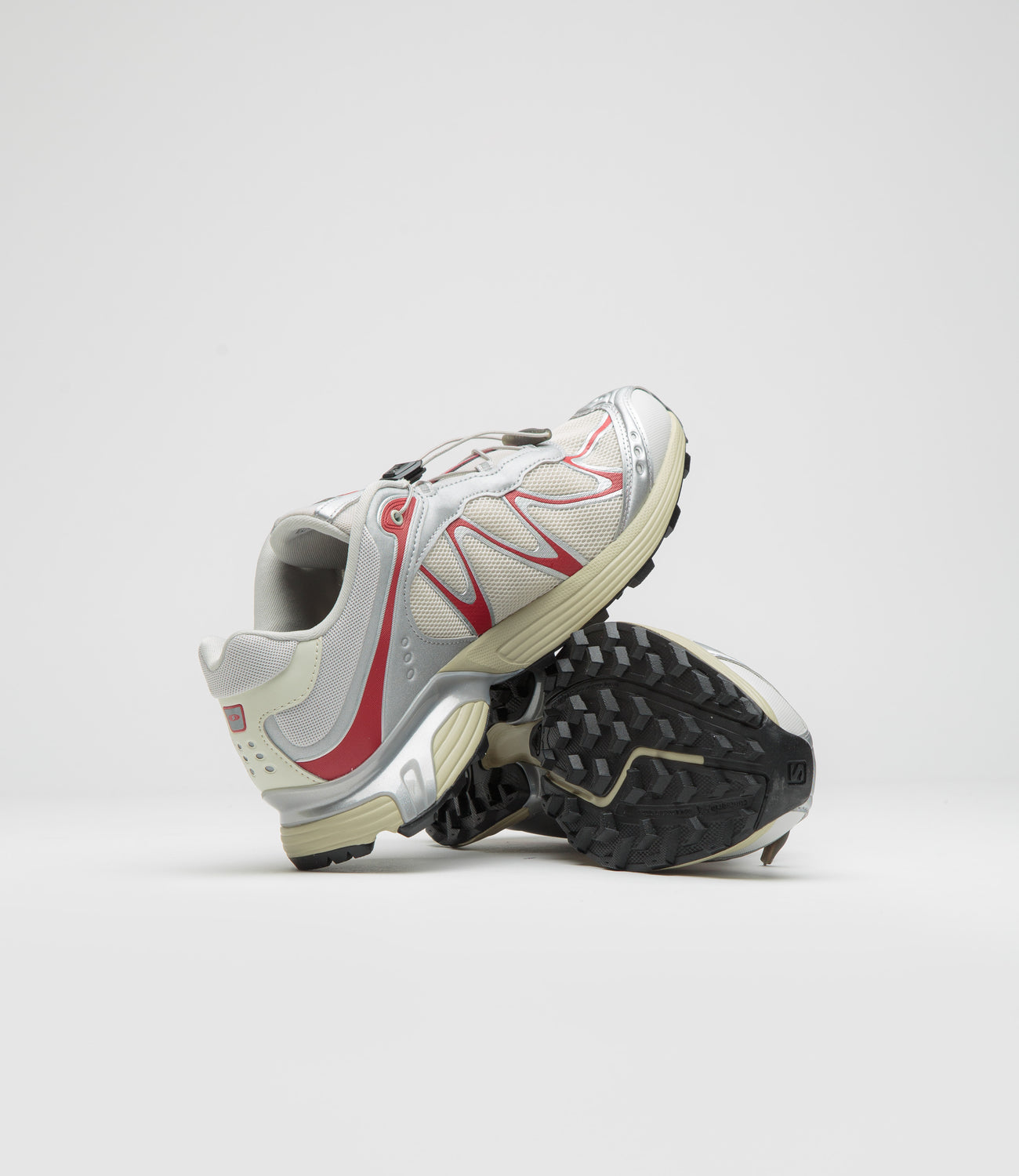 The Salomon XT-Whisper takes cues from trail legends with a fresh silhouette. Panelled synthetic and textile uppers give structure and durability, while an Agile Chassis™ System, SensiFit™ cradle, and protective toe guard keep every step secure. Finished in silver red with reflective details, OrthoLite® cushioning, Quicklace® fastening, a Contagrip™ rubber tread, and tonal Salomon branding, it’s built to handle the trail in style.