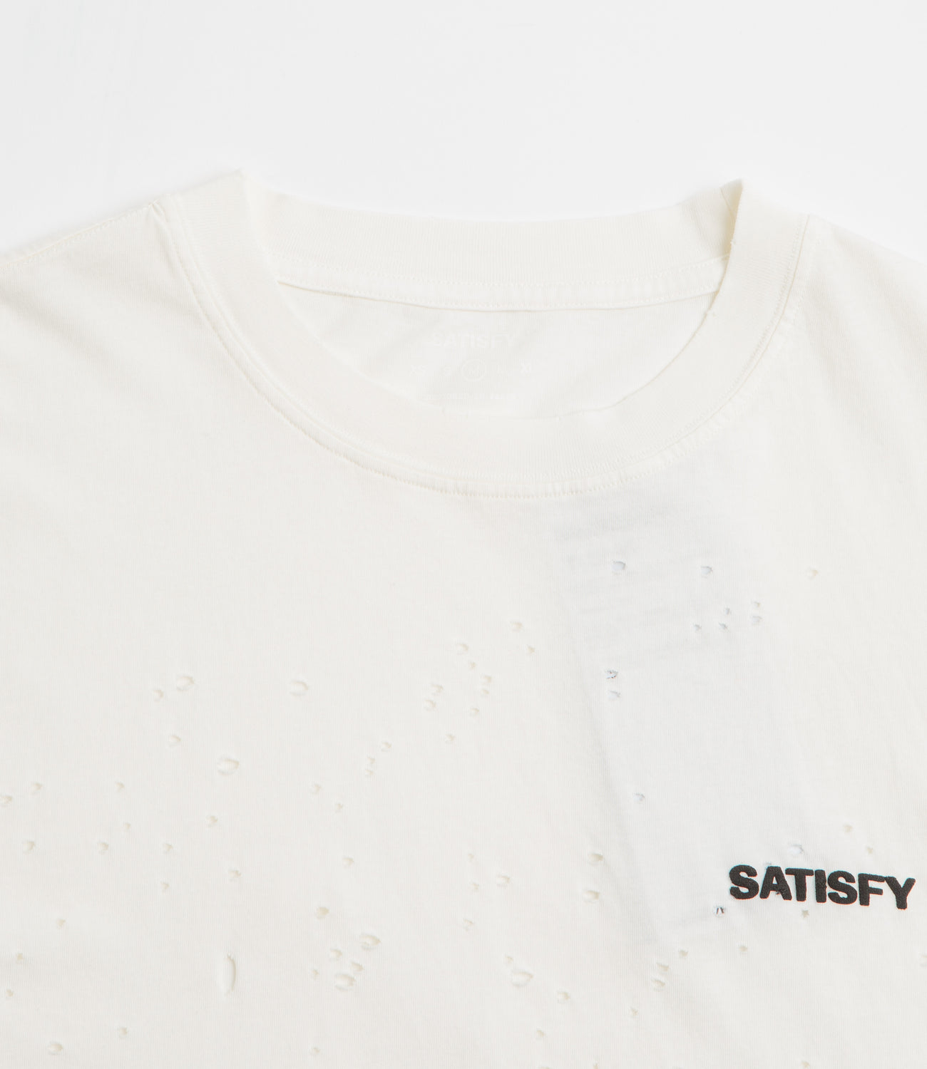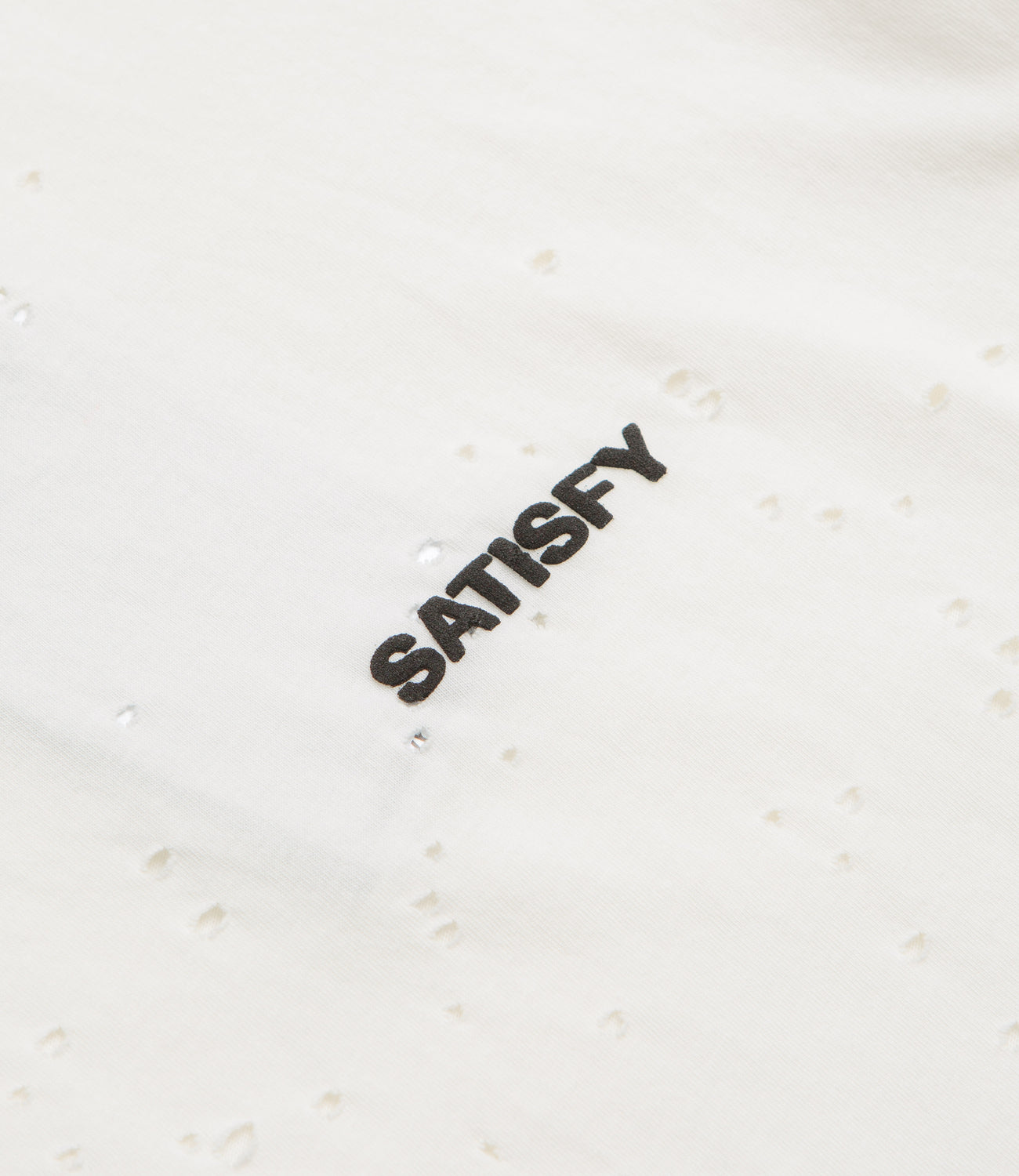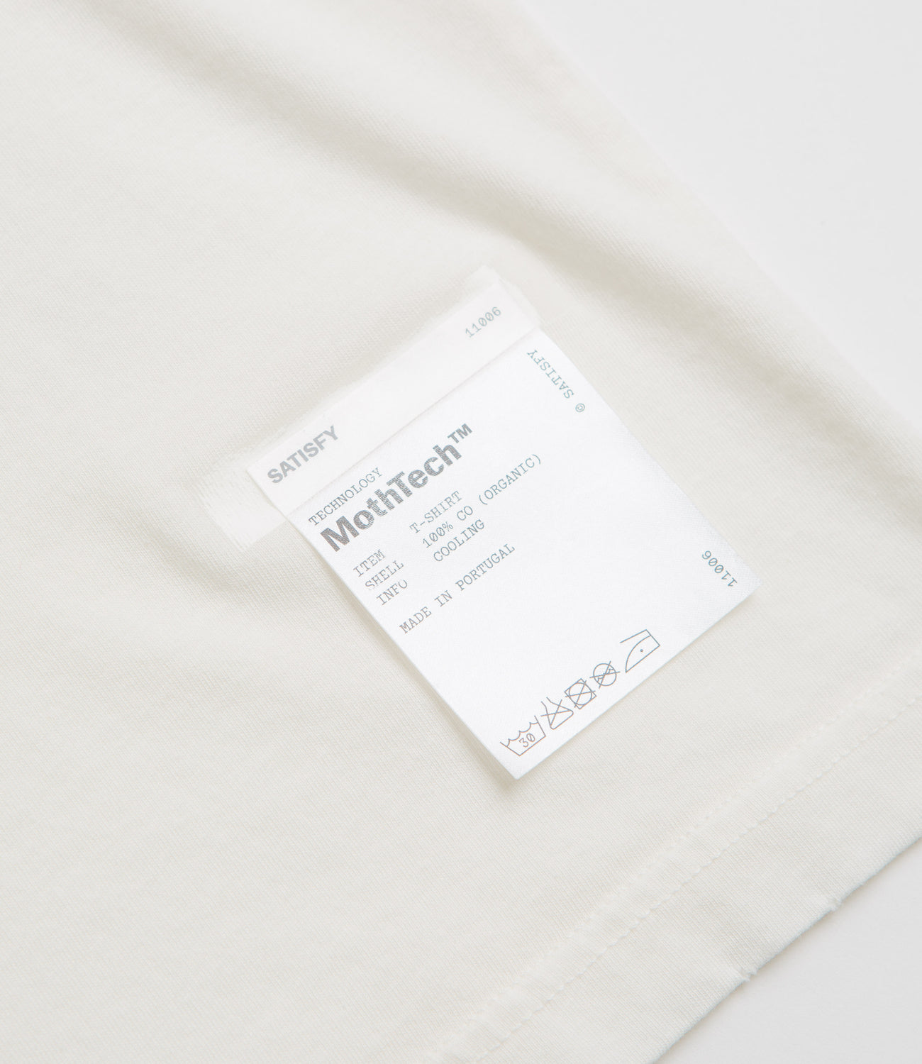Simple, smart, and built for movement. This regular-fit Satisfy tee uses soft 100% organic combed cotton with body-mapped MothTech™ ventilation to keep you cool when it counts. Finished in off-white with a classic crew neck, a subtle printed logo, a hidden inner pocket for essentials, and a detachable care label for a clean look.