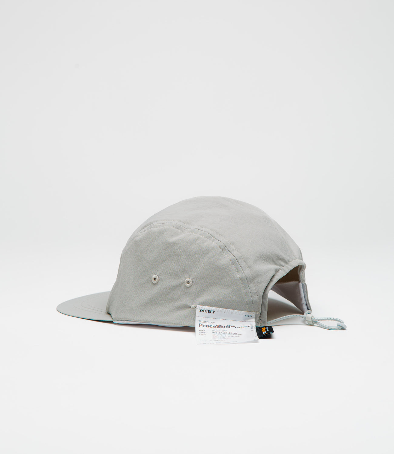 Lightweight, low-profile, and made to move. This Satisfy 5-panel cap is built with Peaceshell™ Cordura® - tough, water-repellent, and ready for whatever the day throws at you. The short brim keeps things streamlined, while the toggle-adjuster locks in a close fit. Finished with reflective hits that show up after dark.