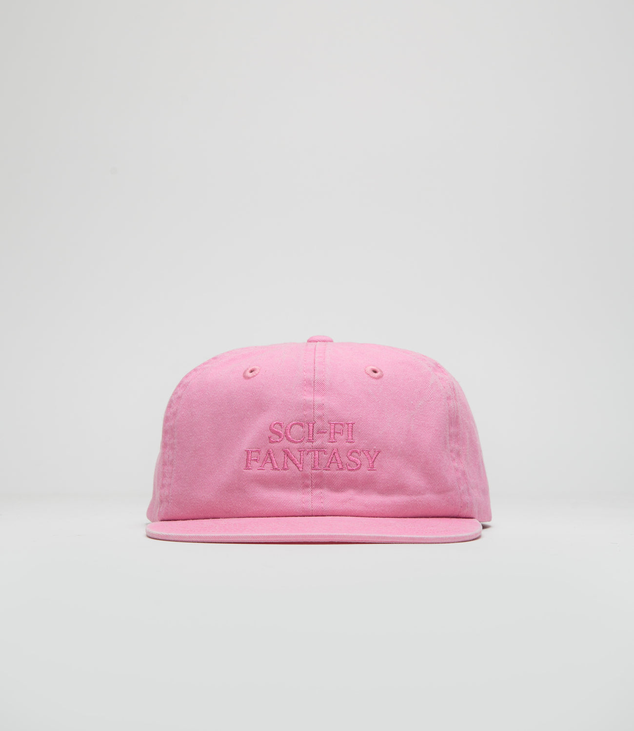 Sci-Fi Fantasy Washed Logo Cap in Pink. Single sized and made from 100% cotton twill, this washed Sci-Fi Fantasy cap is designed with embroidered eyelets and an adjustable snapback fastening. Finished in pink with a six panel profile and embroidered branding.