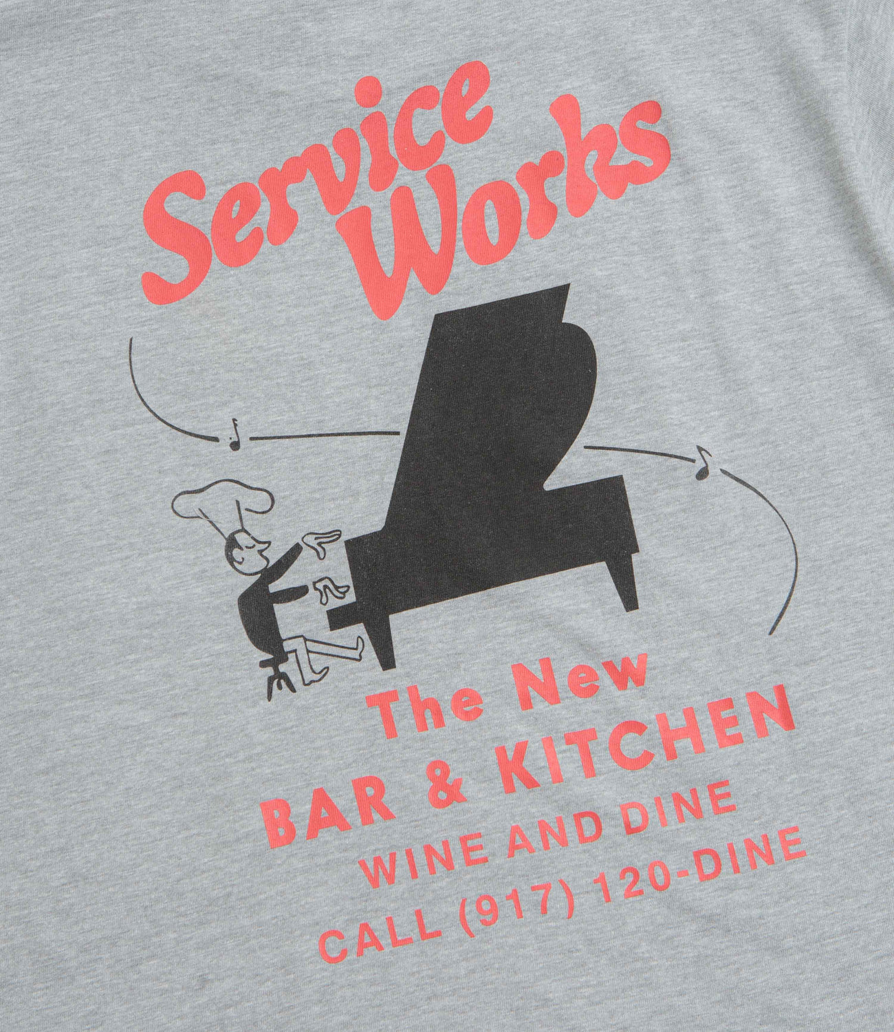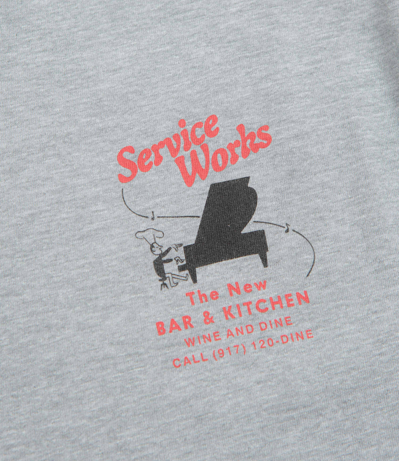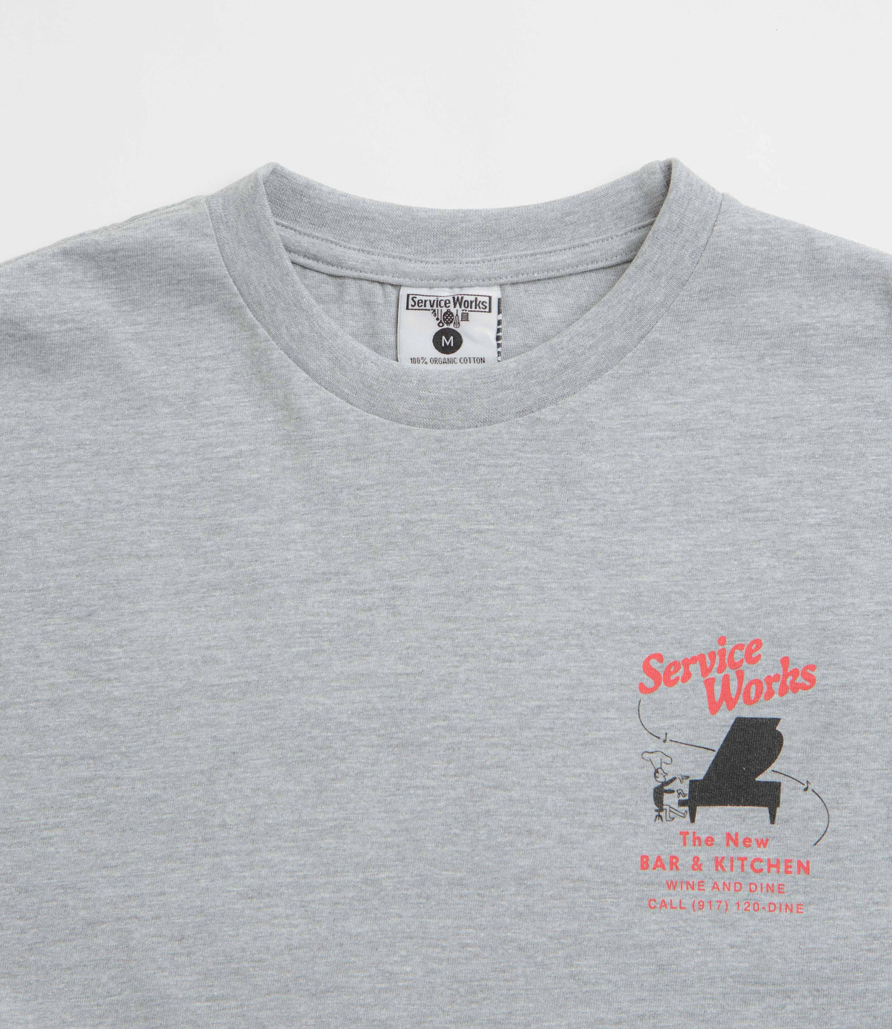 This Service Works t-shirt is made from 100% organic cotton with a regular fit for easy, all-day wear. Garment-dyed in grey, it’s finished with a rib-knit collar and hand screen-printed graphics for a clean, understated look.