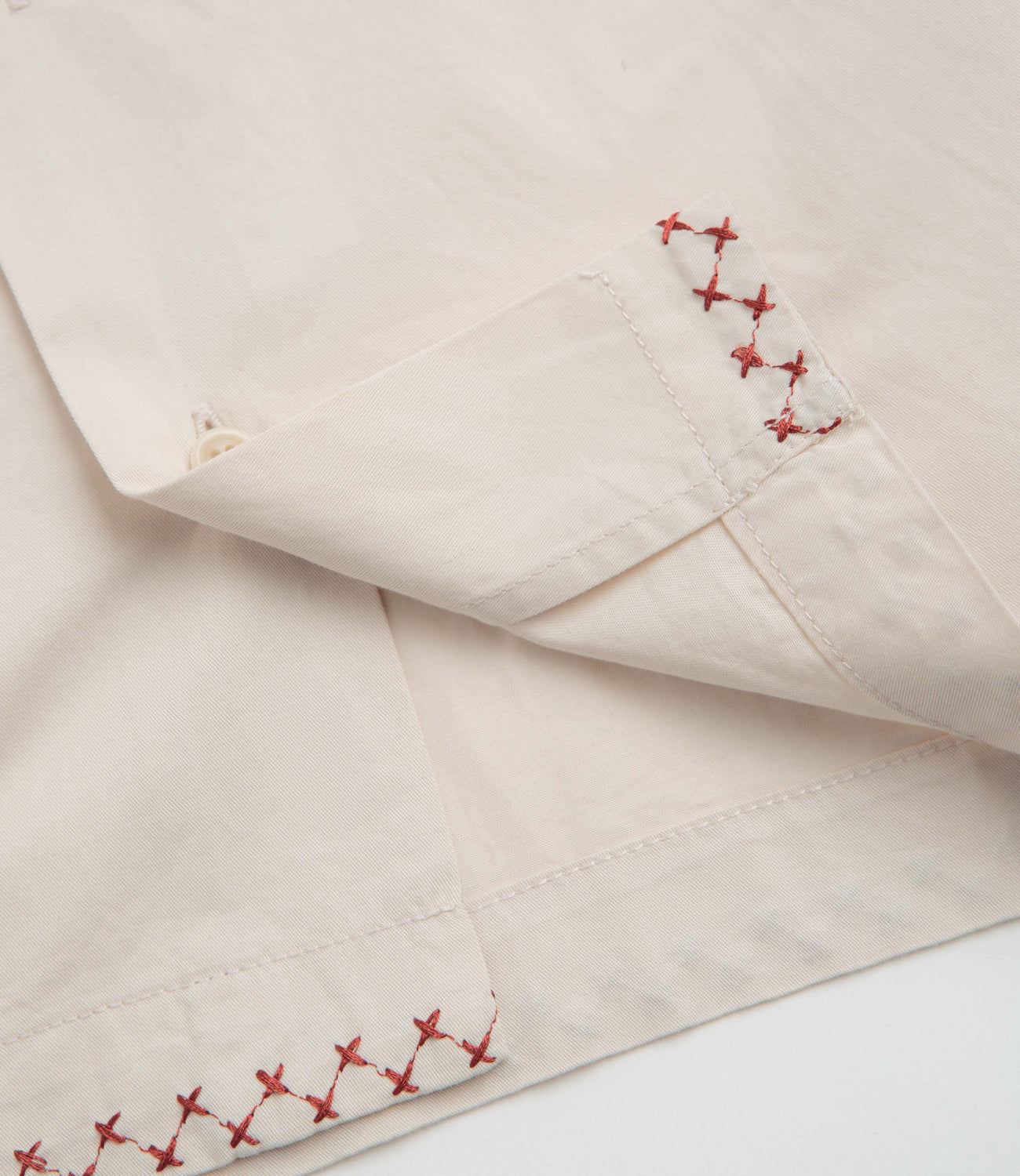 - Embroidered floral and cross-pattern details plus a practical chest pocket