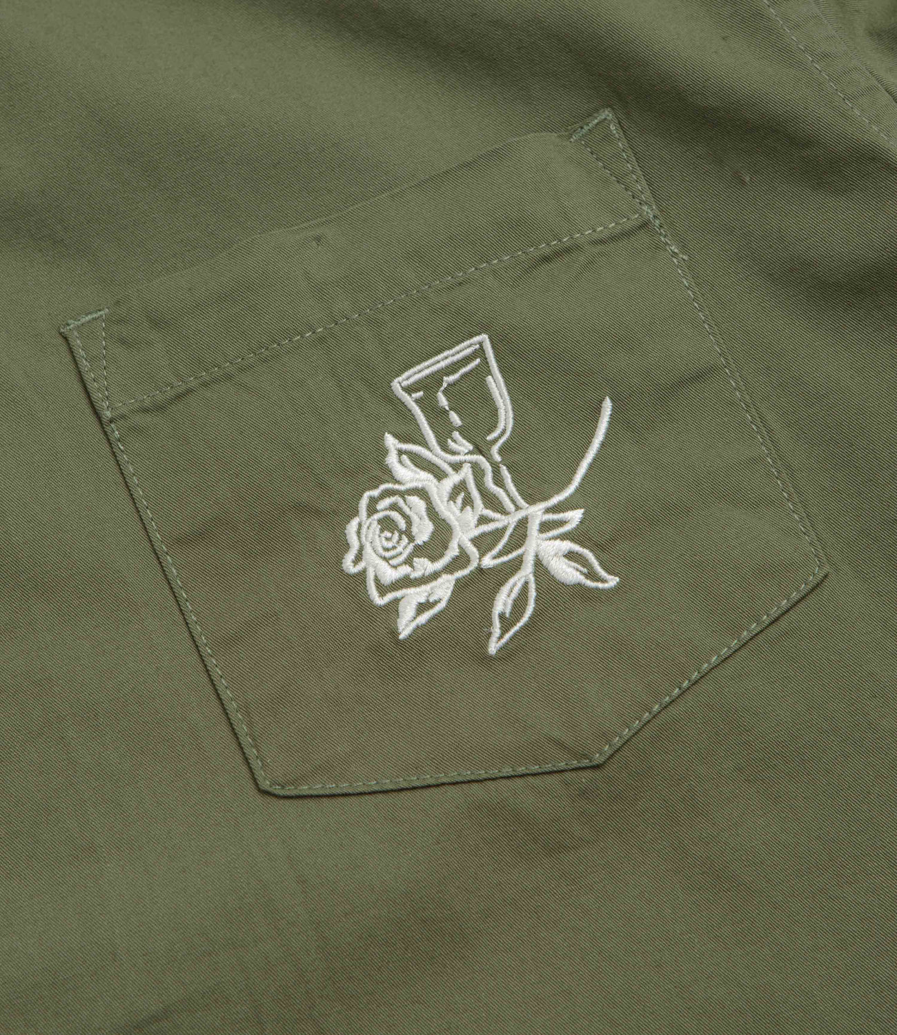 - Subtle embroidered floral and cross-pattern details with a chest pocket