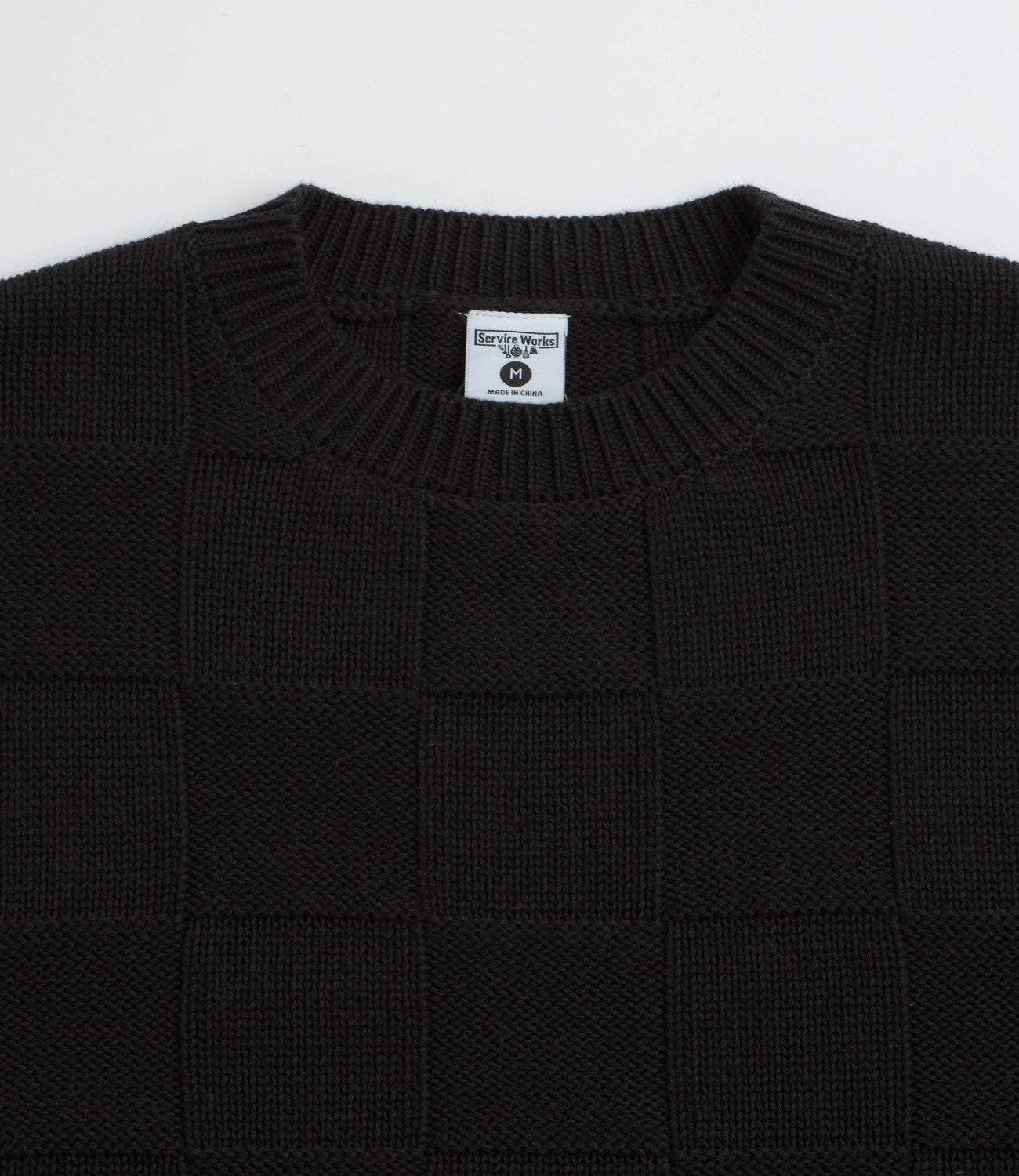Made from 100% loose-gauge cotton, this Service Works sweatshirt pairs a relaxed, regular fit with a soft, textured feel. Finished in black with a checkerboard knit, ribbed trims, and a woven patch label at the hem.