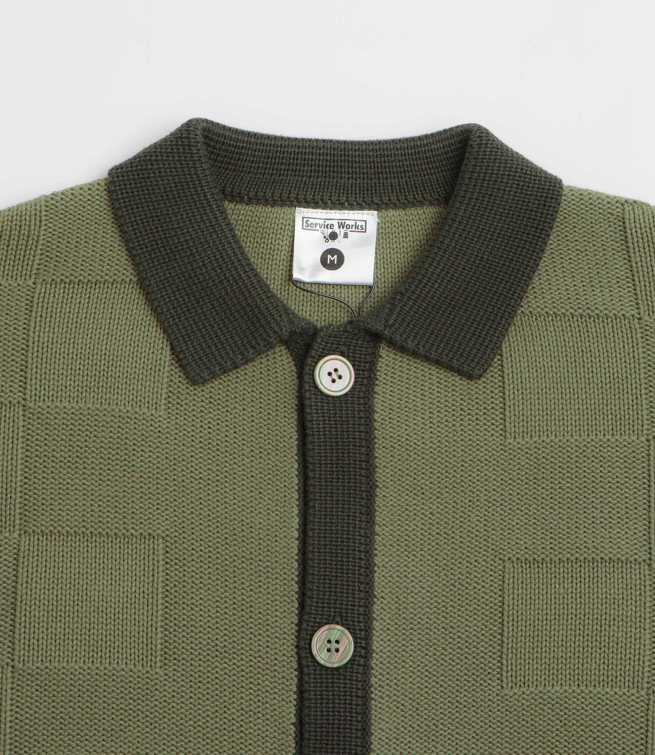 This regular fit cardigan is crafted from 100% cotton knit with a relaxed, loose gauge fabric for easy layering. Checkerboard-effect panels add a subtle twist, while the stand collar and full-length button fastening keep it versatile. Ribbed cuffs and hem finish things off with a clean, comfortable fit made for everyday wear.