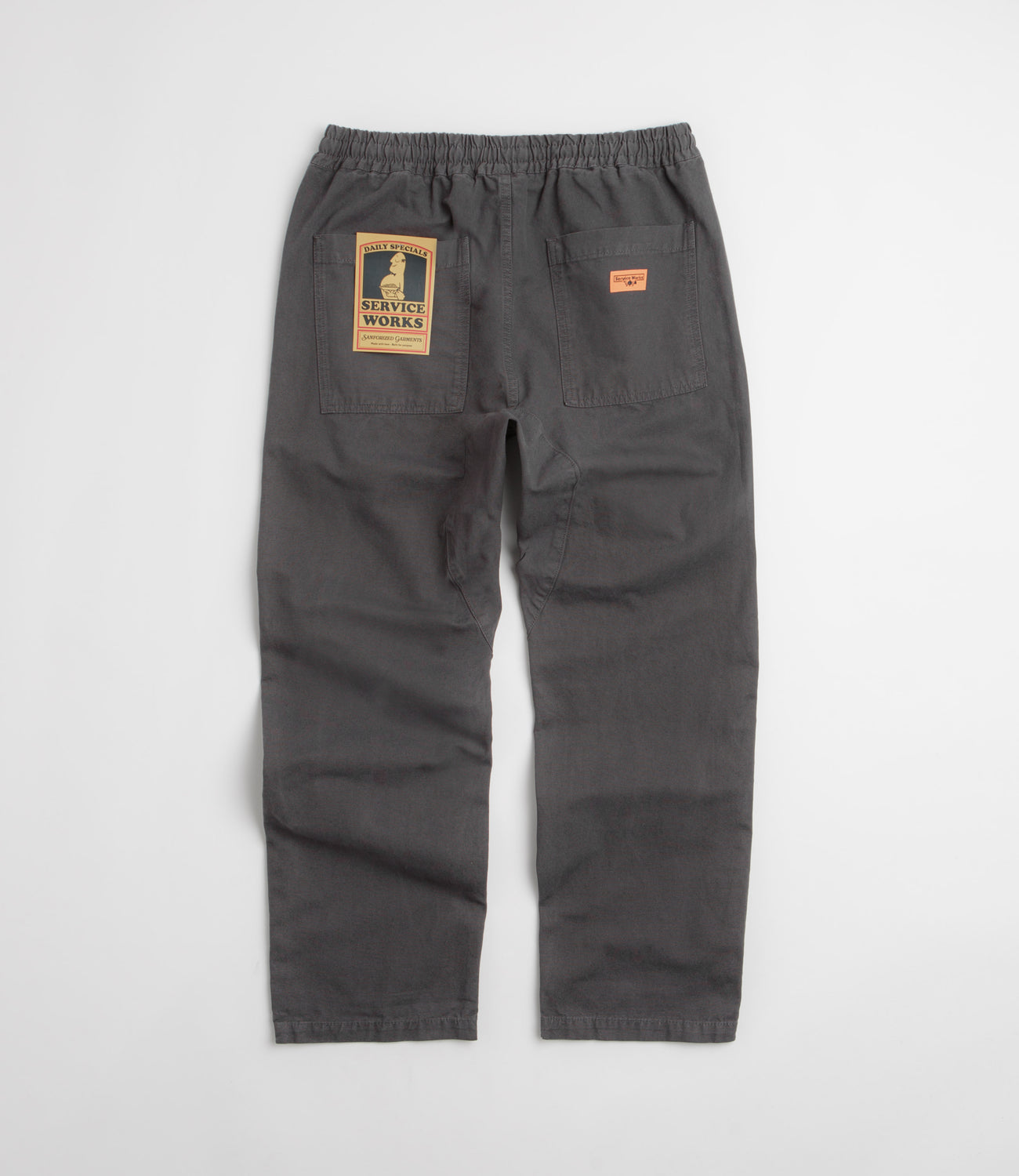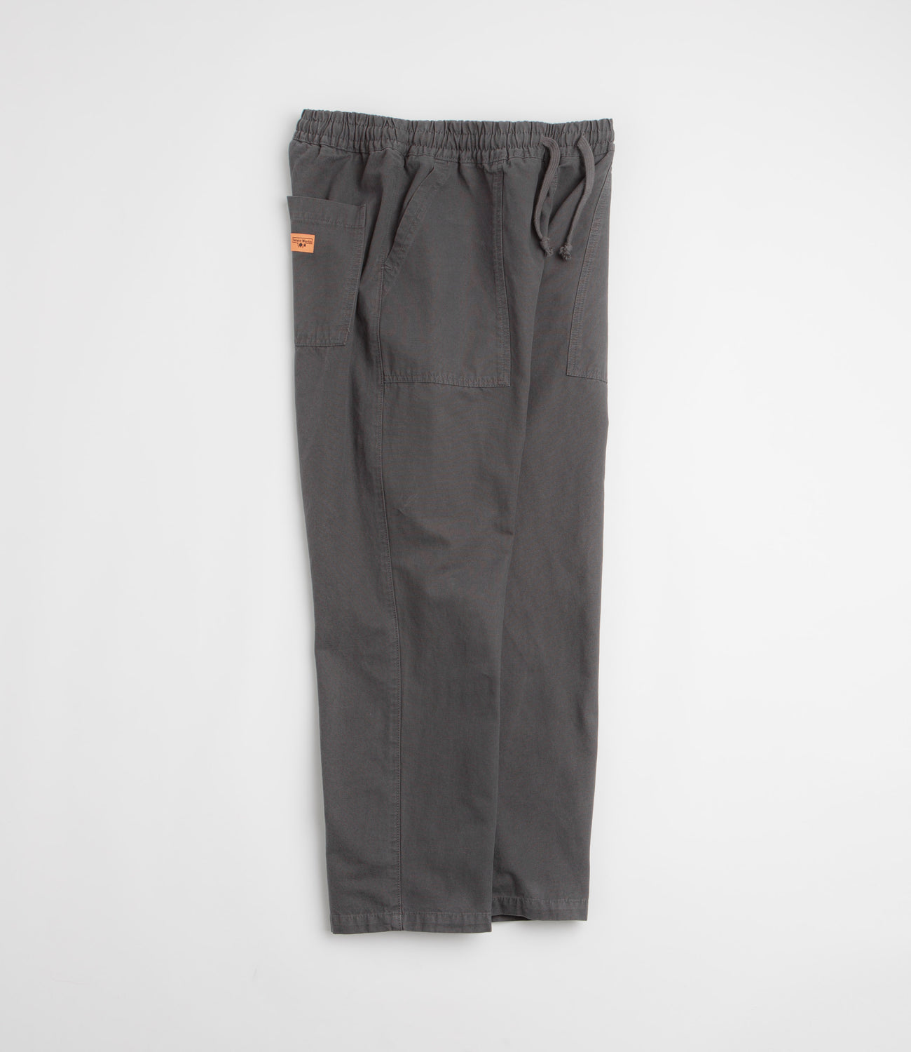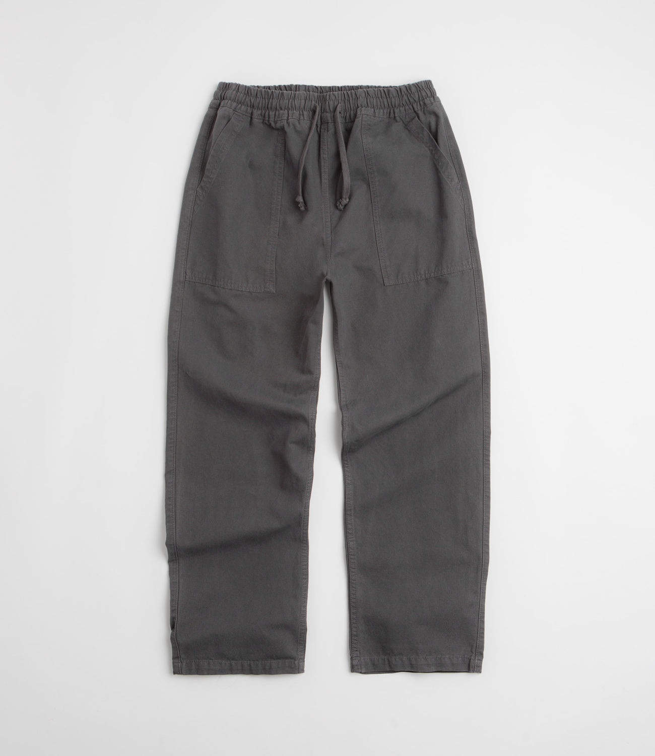 Made from 100% organic cotton canvas, these GOTS-certified Service Works Pants are built for comfort and movement. Garment-dyed for a lived-in feel, they feature an elasticated drawstring waist and a straight cut that moves with you, while a reinforced crotch panel adds durability. Finished in grey with two front pockets, two rear pockets, and subtle woven flag label branding.
